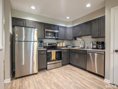 Spacious 1,298 SF townhouse offering 3 bedrooms and 1.5 bathrooms in a well-maintained community featuring a pool, playground, and clubhouse. The main level offers an open-concept living and dining area with great natural light and sliding glass doors leading to a private rear patio - perfect for relaxing or entertaining. The kitchen includes stainless steel appliances, ample cabinetry, and functional workspace. Upstairs you'll find three generously sized bedrooms and a full bath, providing flexibility for bedrooms, home office, or guest space. Additional highlights include in-unit laundry, central air, and an all-electric heat pump HVAC system for efficient year-round comfort. The home also features a 1-car attached garage with additional owner parking in front of unit. Conveniently located near shopping centers, grocery stores, restaurants, and everyday conveniences, with easy access to major highways and just minutes to the train station - ideal for commuters. Low-maintenance living in a prime location!