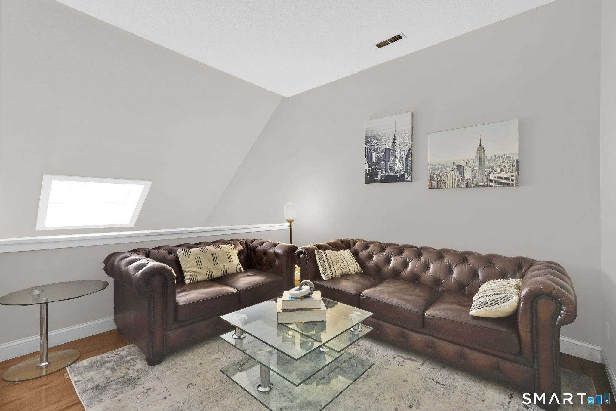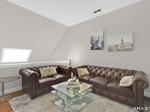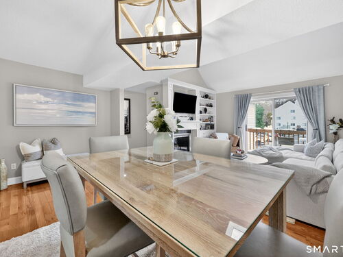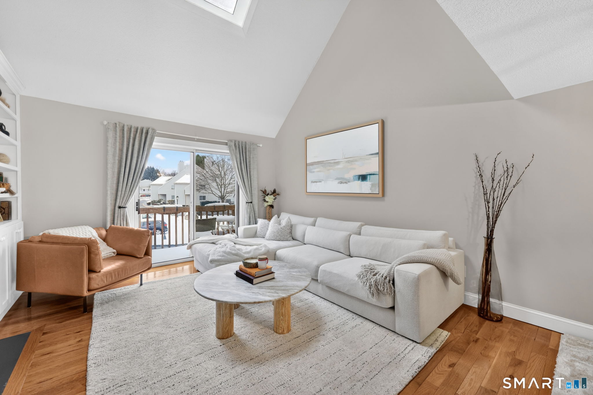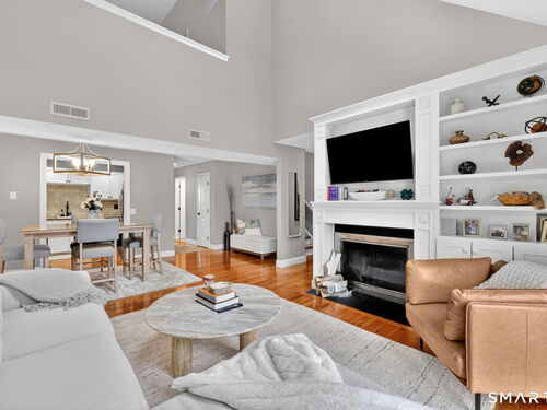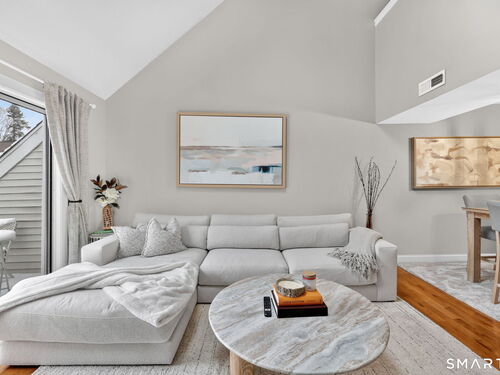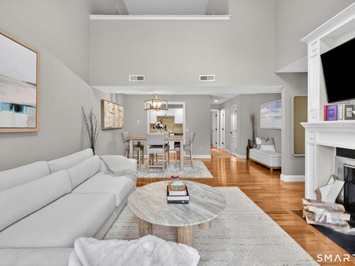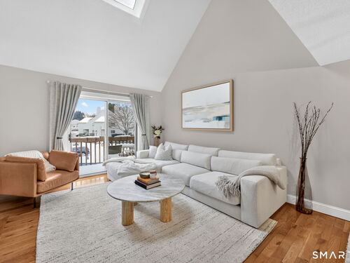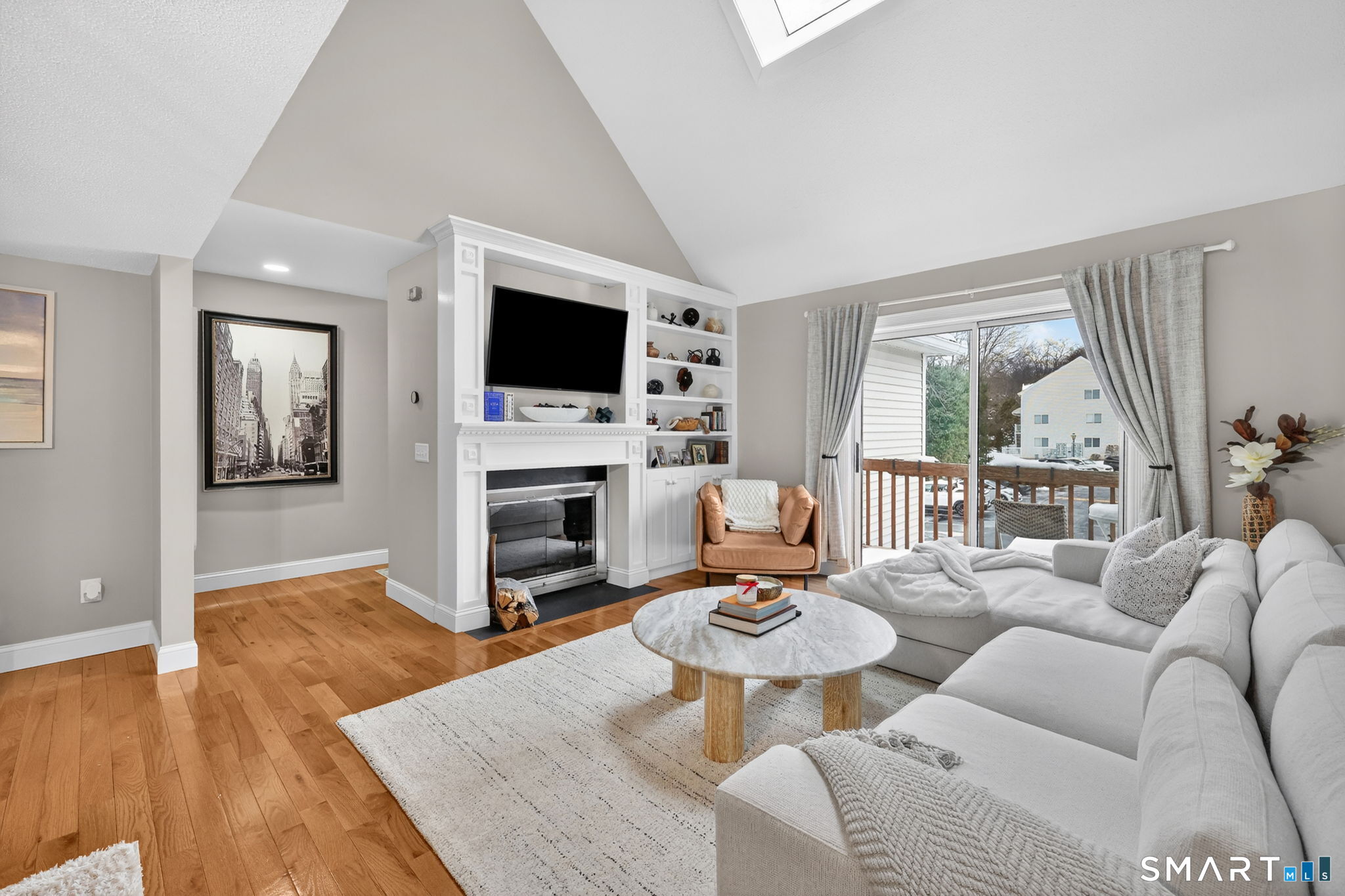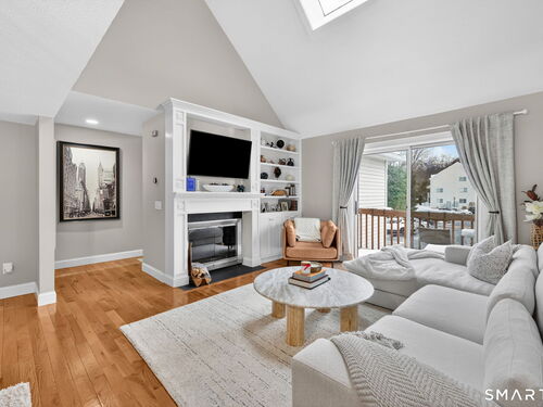 Move-in ready and beautifully updated, this exceptional condo is located within a desirable gated community in Bridgeport's sought-after North End, just minutes from Sacred Heart University. Meticulously maintained, the home features fresh neutral paint and hardwood flooring throughout. The main level offers soaring ceilings and an inviting living room highlighted by a wood-burning fireplace framed with custom built-ins and tasteful millwork. Sliding glass doors open to a front deck overlooking the private community, creating a seamless indoor-outdoor connection. The updated kitchen is appointed with granite countertops, crisp white cabinetry, and stainless-steel appliances, along with a separate dining area ideal for entertaining. This level also includes a spacious bedroom with a large walk-in closet and a full bath. Upstairs, the generous primary suite features a beautifully updated en-suite bath and an additional oversized walk-in closet. A sun-drenched loft provides versatile space for a third bedroom, home office, or additional living area. Convenient second-floor laundry completes the home's thoughtful layout. Residents enjoy the benefits of a well-maintained, gated community with close proximity to shopping, dining, and major commuter routes-offering both comfort and convenience in an exceptional location. Also available for rent.