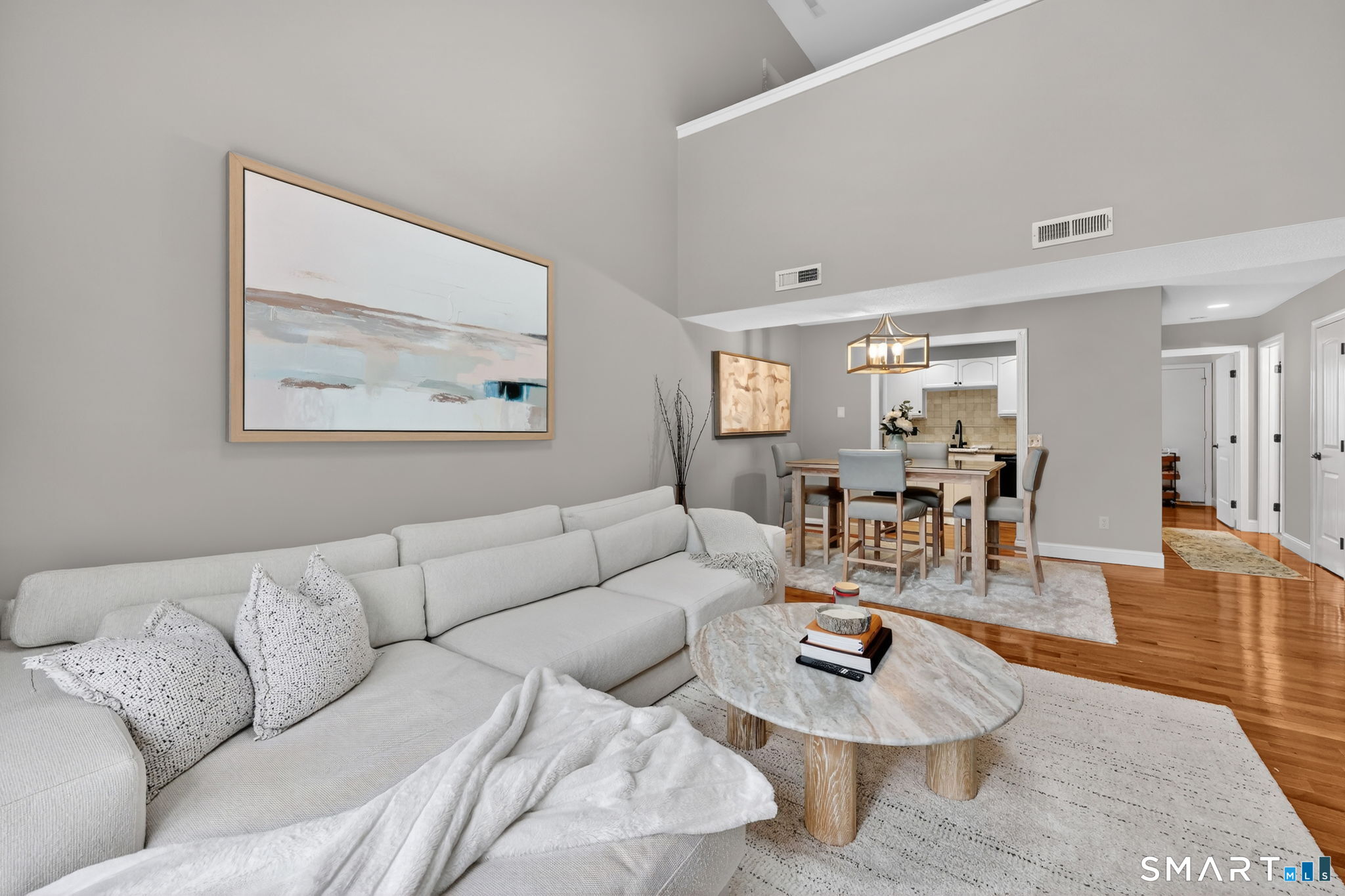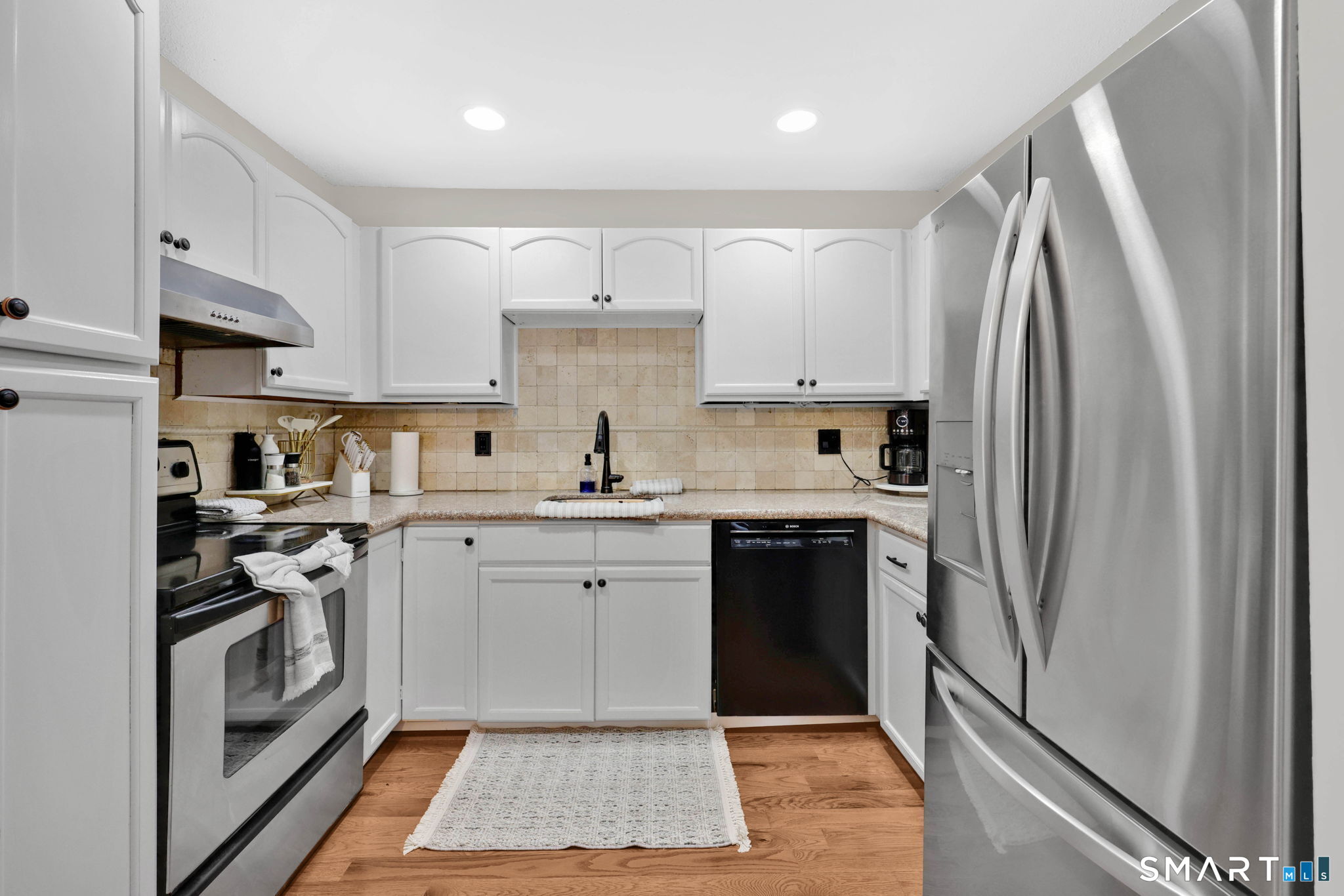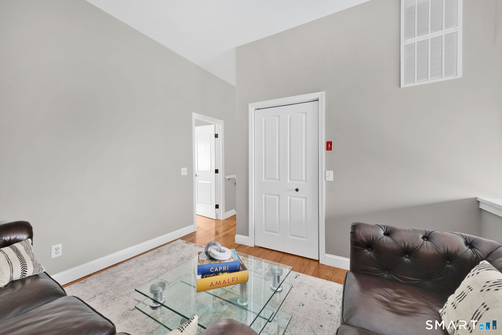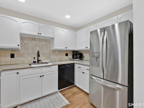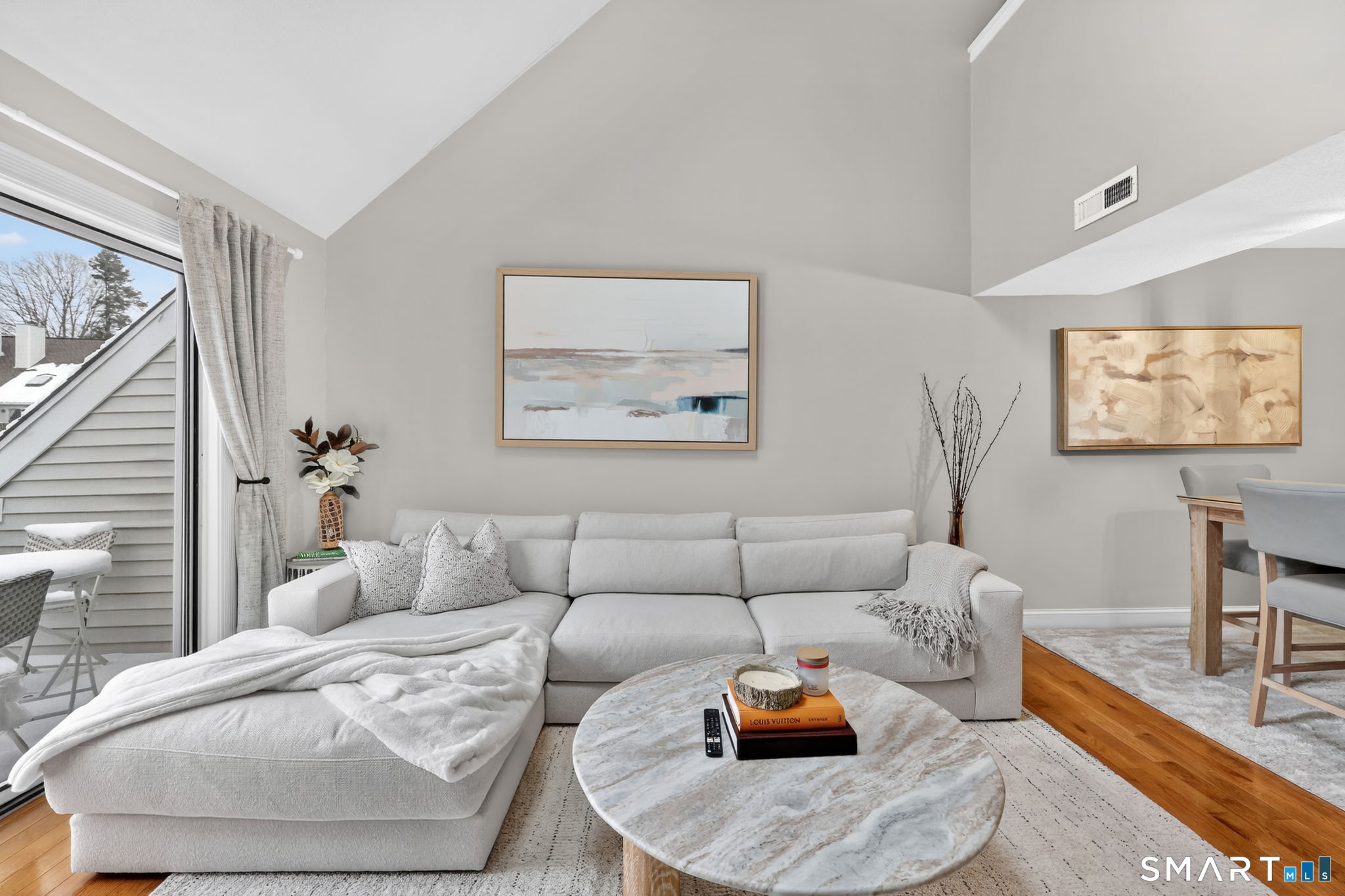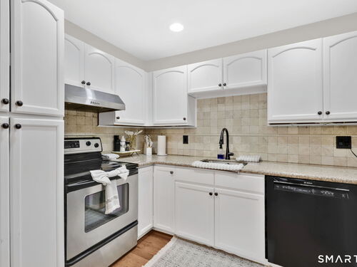 Move-in ready and beautifully updated, this exceptional condo is located within a desirable gated community in Bridgeport's sought-after North End, just minutes from Sacred Heart University. Meticulously maintained, the home features fresh neutral paint and hardwood flooring throughout. The main level offers soaring ceilings and an inviting living room highlighted by a wood-burning fireplace framed with custom built-ins and tasteful millwork. Sliding glass doors open to a front deck overlooking the private community, creating a seamless indoor-outdoor connection. The updated kitchen is appointed with granite countertops, crisp white cabinetry, and stainless-steel appliances, along with a separate dining area ideal for entertaining. This level also includes a spacious bedroom with a large walk-in closet and a full bath. Upstairs, the generous primary suite features a beautifully updated en-suite bath and an additional oversized walk-in closet. A sun-drenched loft provides versatile space for a third bedroom, home office, or additional living area. Convenient second-floor laundry completes the home's thoughtful layout. Residents enjoy the benefits of a well-maintained, gated community with close proximity to shopping, dining, and major commuter routes-offering both comfort and convenience in an exceptional location. Also available for rent.