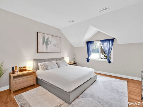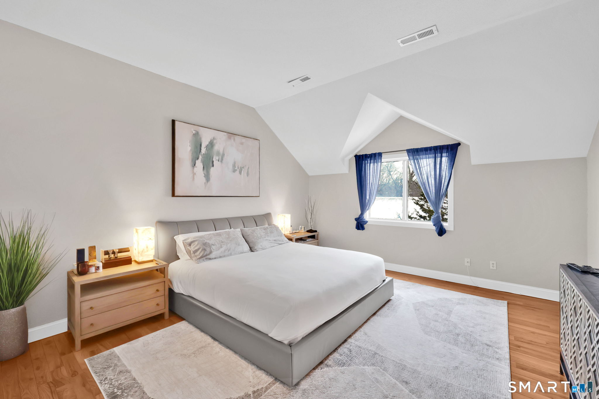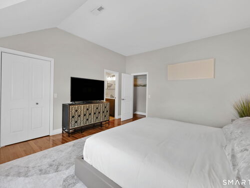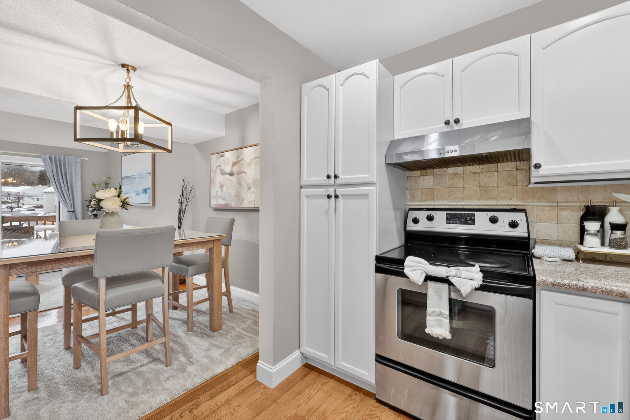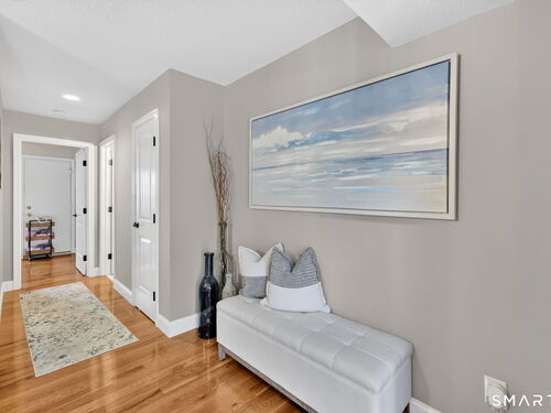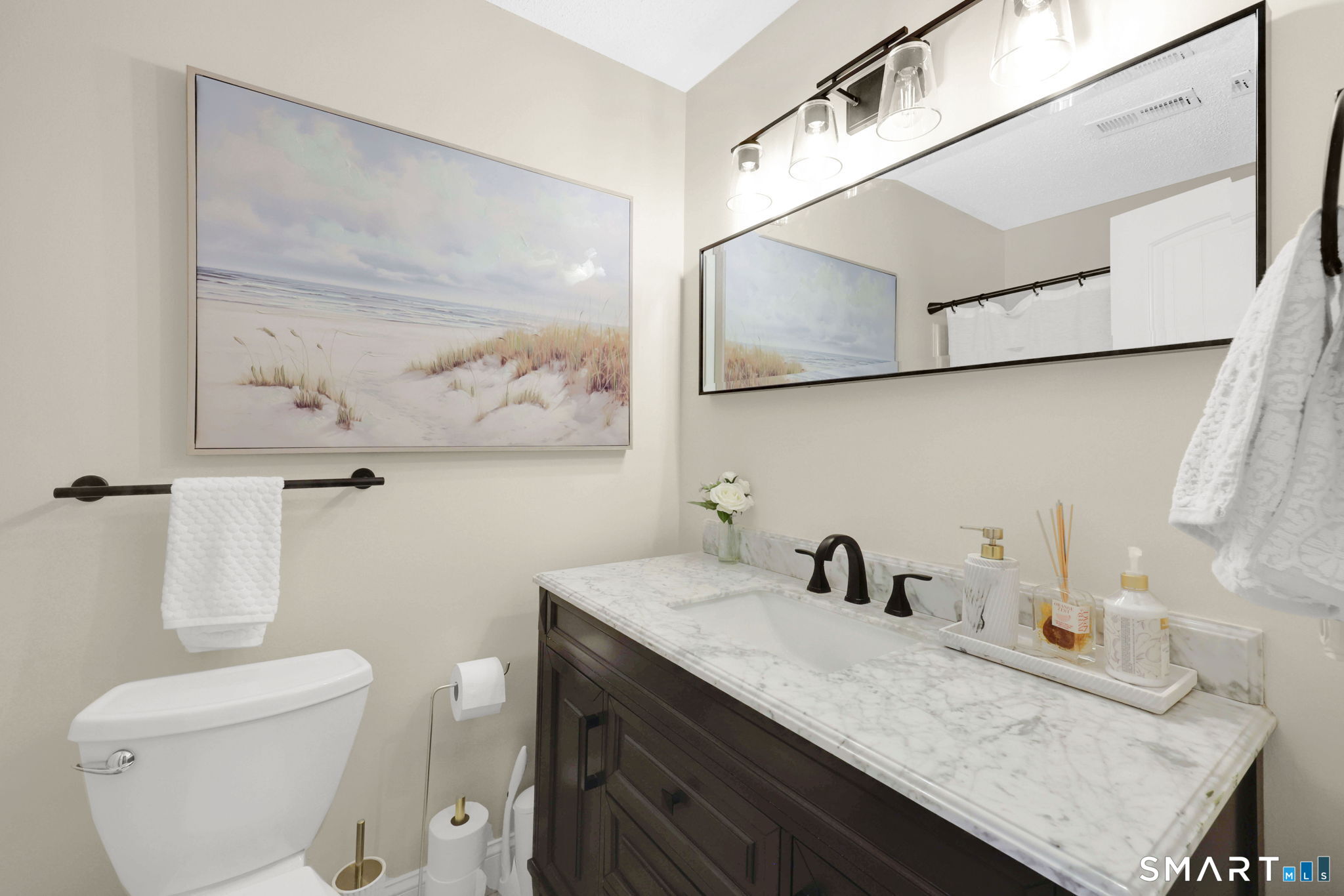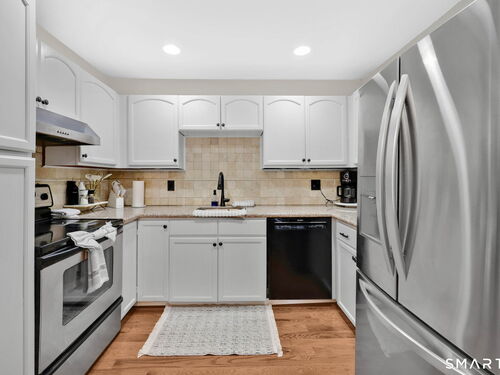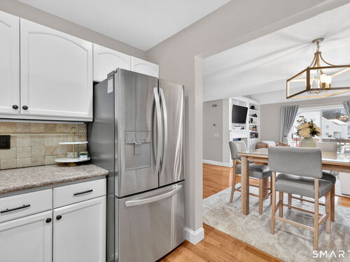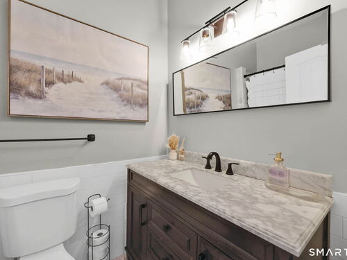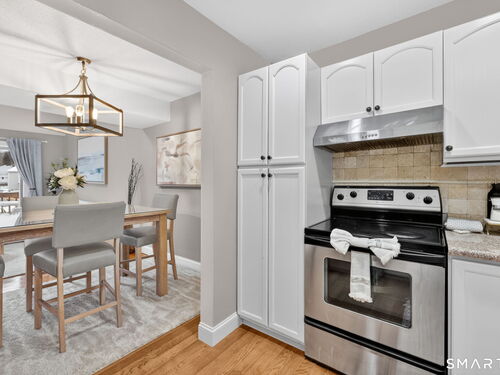 Move-in ready and beautifully updated, this exceptional condo is located within a desirable gated community in Bridgeport's sought-after North End, just minutes from Sacred Heart University. Meticulously maintained, the home features fresh neutral paint and hardwood flooring throughout. The main level offers soaring ceilings and an inviting living room highlighted by a wood-burning fireplace framed with custom built-ins and tasteful millwork. Sliding glass doors open to a front deck overlooking the private community, creating a seamless indoor-outdoor connection. The updated kitchen is appointed with granite countertops, crisp white cabinetry, and stainless-steel appliances, along with a separate dining area ideal for entertaining. This level also includes a spacious bedroom with a large walk-in closet and a full bath. Upstairs, the generous primary suite features a beautifully updated en-suite bath and an additional oversized walk-in closet. A sun-drenched loft provides versatile space for a third bedroom, home office, or additional living area. Convenient second-floor laundry completes the home's thoughtful layout. Residents enjoy the benefits of a well-maintained, gated community with close proximity to shopping, dining, and major commuter routes-offering both comfort and convenience in an exceptional location. Also available for rent.