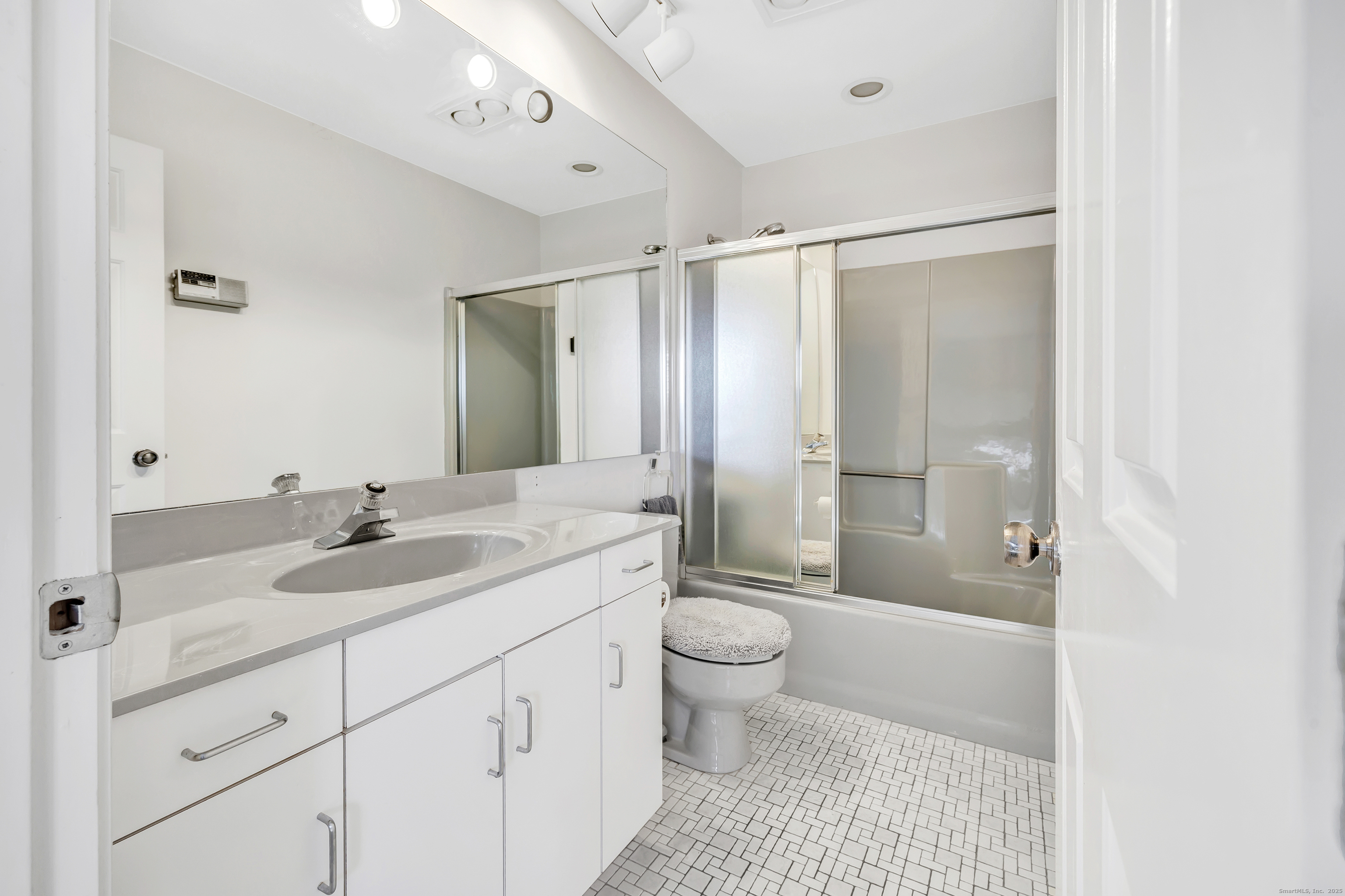 Welcome to 328 Navajo Loop in the desirable Aspetuck Village community. This spacious Clemens II townhouse offers a flexible layout and thoughtful updates throughout. The attached two-car garage provides convenient interior access into a bright, eat-in kitchen. An open dining and living room features wall-to-wall carpet, a charming brick fireplace, and large French doors leading to an oversized deck and private backyard-perfect for entertaining or relaxing outdoors. The main level includes a half bath, laundry area, and an additional room that can serve as a den, office, or third bedroom with a closet. Upstairs, the primary and second bedrooms each offer their own ensuite baths, providing comfort and privacy. The finished lower level adds valuable living space with two rooms, closets, and plenty of storage options. Enjoy the ease of condo living in one of Shelton's most sought-after locations, close to shopping, dining, and major commuting routes. Experience comfort, space, and convenience all in one.