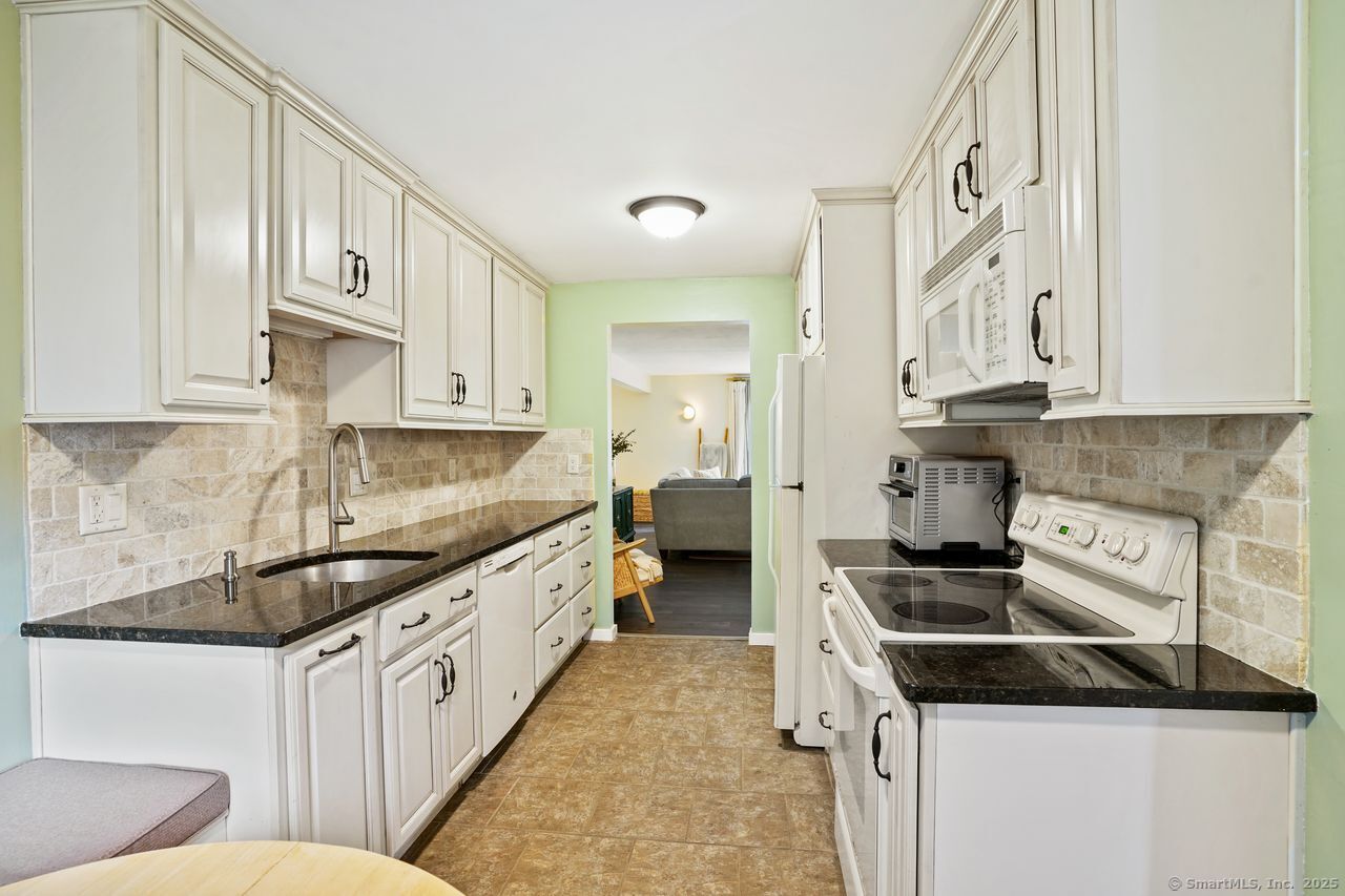 Make yourself at home in this warm and welcoming two bedroom, two and a half bath townhouse located in the Fall River complex. Thoughtfully updated and meticulously maintained, this home offers comfortable and functional living across all levels with an abundance of natural light throughout. The main floor features a spacious living room that flows seamlessly into the dining area, complete with a wood burning fireplace and sliding doors that open to the private deck. Just off the living area, you'll find a cozy eat-in kitchen with a built-in bench, granite countertops, and plenty of cabinet space for storage and meal prep. Upstairs, the primary bedroom includes generous closet space and a primary bath with stall shower. The second spacious bedroom is served by an updated hallway bathroom with tub/shower. The lower level provides additional 400 sq ft of heated flexible living space, ideal for a gym, office, or playroom along with a separate, oversized storage room that adds even more functionality. Residents of the Fall River complex enjoy full access to a wide range of amenities, including an inground pool, fitness center, sauna, basketball and tennis courts, clubhouse, playground, and scenic trails. The location offers close proximity to Route 8, the Merritt Parkway, shopping, and everyday conveniences all with the benefit of low monthly common charges. Ready for its next owner, come see it in person!