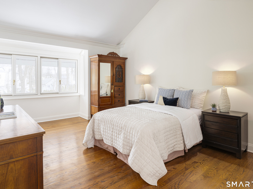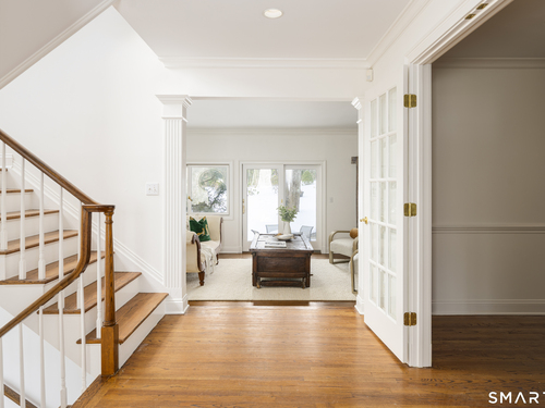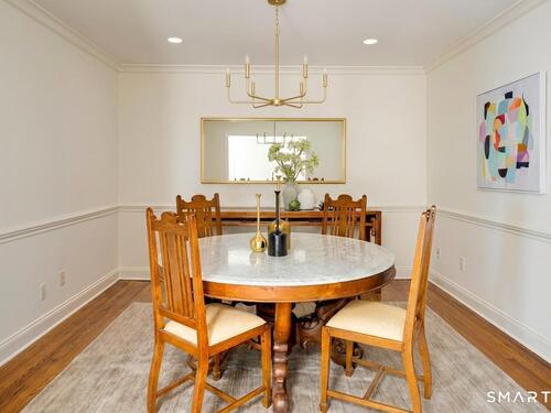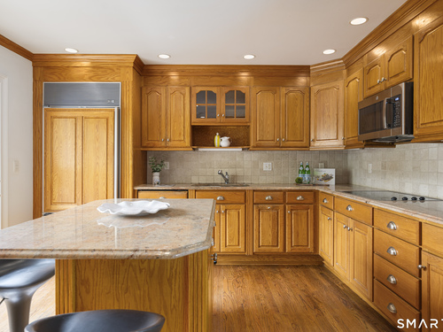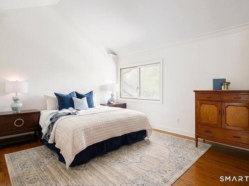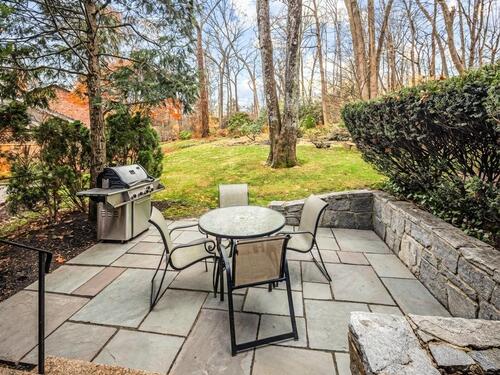 Located one mile from New Canaan's town center, 377 Main Street, Unit 17 offers turnkey townhouse living just moments from Metro-North, Waveny Park and New Canaan schools. This light-filled condominium blends low-maintenance living with the privacy and scale of a single-family home. Featuring 3 bedrooms with cathedral ceilings, 2.5 baths, and approximately 2,800 square feet - including a finished lower level - this Kings Grant residence offers expansive living areas, hardwood floors throughout, and seamless indoor-outdoor flow. Elevated, private positioning within the complex and oversized windows provide exceptional natural light and peaceful views. The spacious kitchen includes a center island, stainless steel appliances, generous counter space, and sliding doors opening to a sun-filled deck - ideal for everyday living and entertaining. Additional highlights include a wood-burning fireplace, natural gas, direct access to a private terrace and two elevated decks, abundant storage, and an attached two-car garage. Kings Grant is a pet-friendly community featuring a beautifully maintained, heated pool and professionally managed grounds.