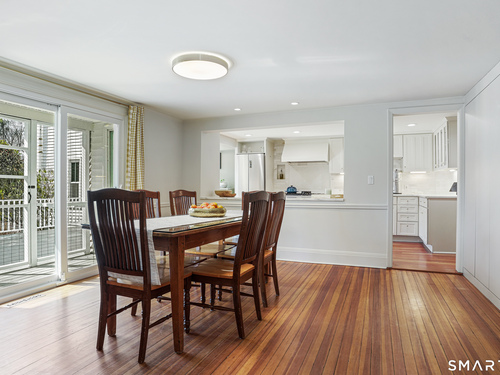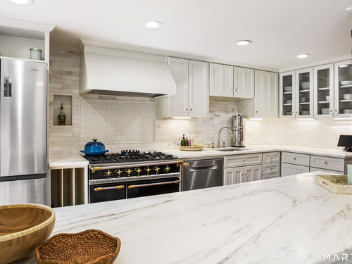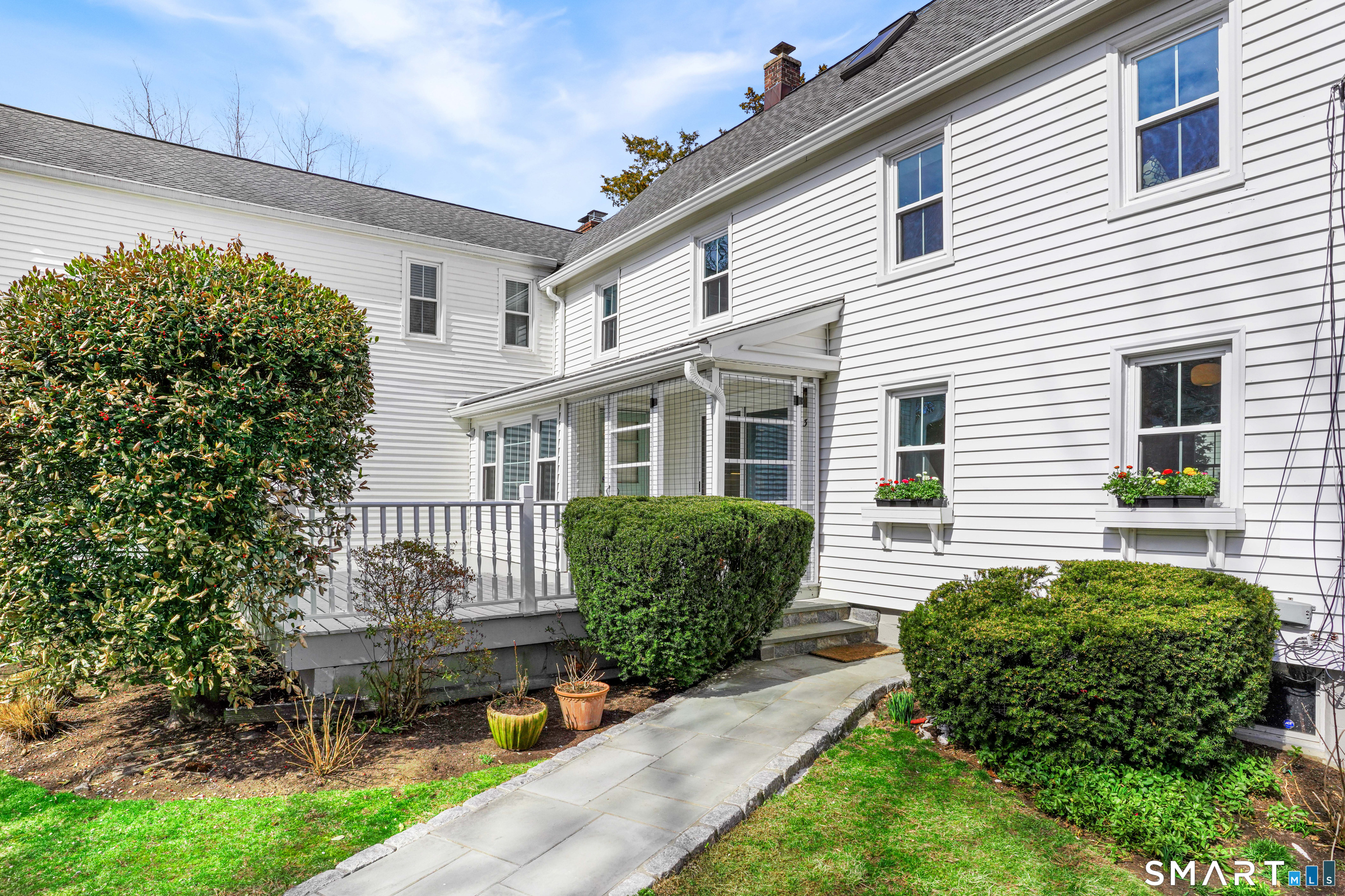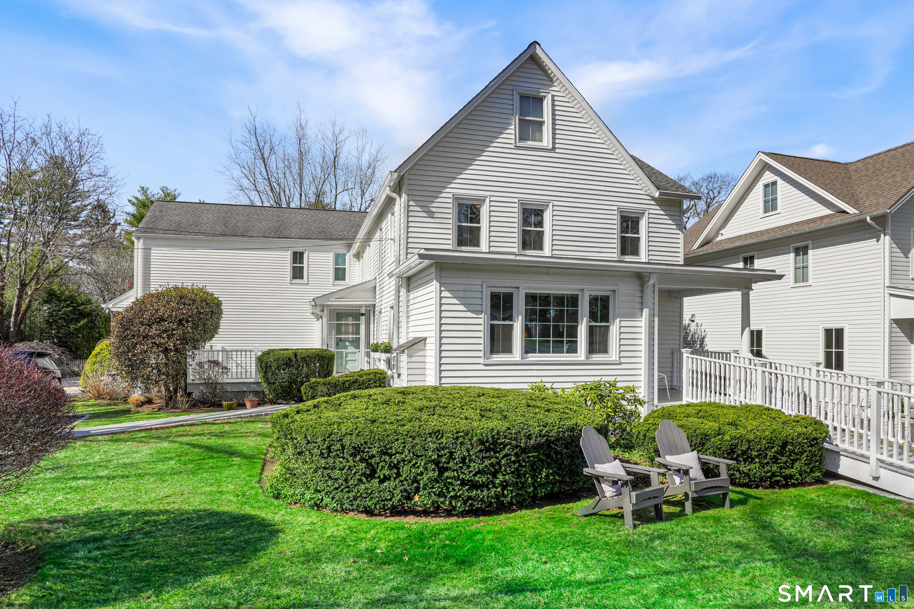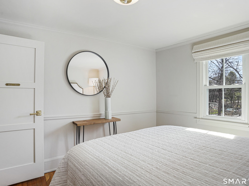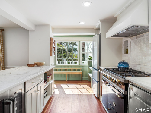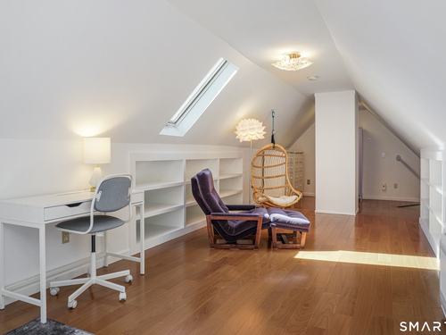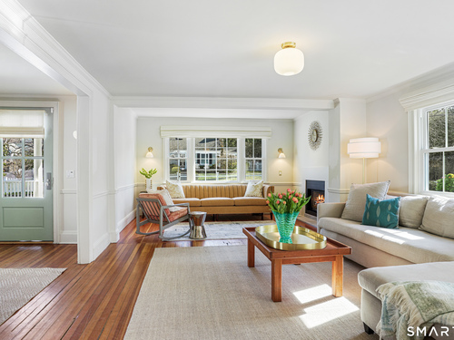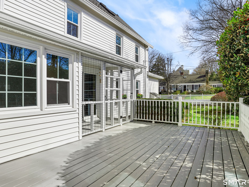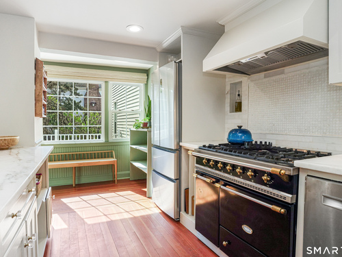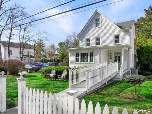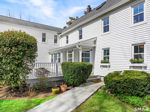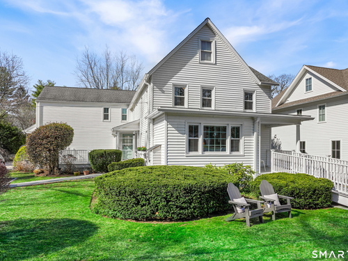 Rich in warmth and history, this enchanting antique gable-front home has been thoroughly updated to offer the rare combination of timeless character and modern ease. A townhouse in a small condo association, the home lives like a single-family home, blending privacy, space, curb appeal, and charm with the convenience of shared exterior maintenance. The home welcomes guests with an inviting foyer leading to open living spaces. The thoughtfully renovated chef's kitchen features elegant marble countertops and a stunning Lacanche range, handcrafted in Burgundy, France. Upstairs are three bedrooms, including a spacious primary suite with an updated en suite bath. The third floor, with its sun-filled skylights, built-in shelving, and new flooring, offers exceptional flexibility. It is ideal as a home office, playroom, private guest space, or as the coolest kids' bedroom ever, with its hangout area featuring a rattan swing chair. The recently fully-finished basement expands the home's living space and is perfect for recreation, fitness, or a media room. Other significant recent upgrades include a new heat pump system, tankless water heater, and built-in cabinets. A private, south-facing deck invites morning coffee, outdoor dining, and summer entertaining. Dedicated outdoor parking spaces and a private garage add daily convenience. Located in a quiet, walkable neighborhood with a great sense of community. Near to New Canaan's village, schools, Bristow Bird Sanctuary, and Mead Park.