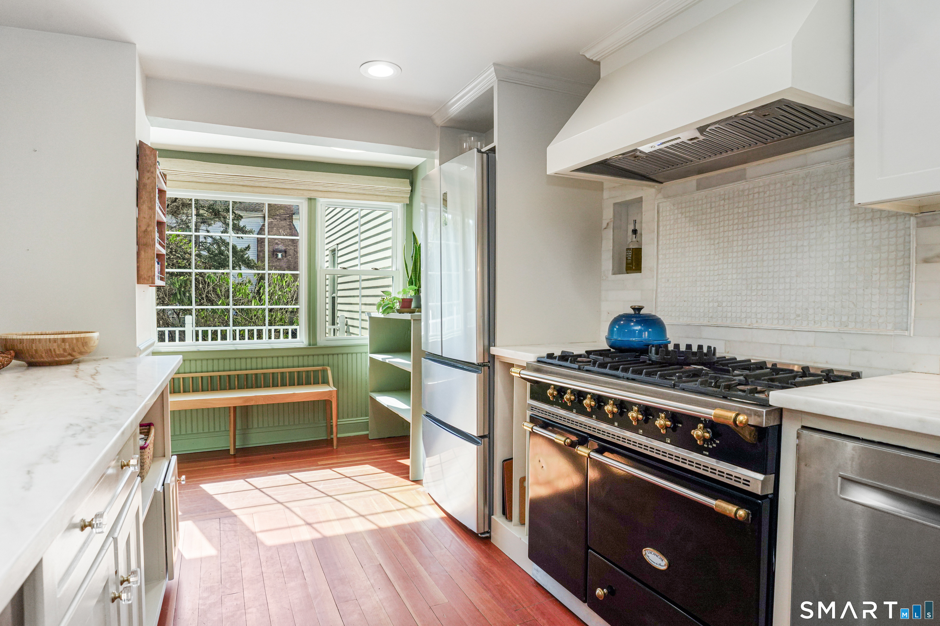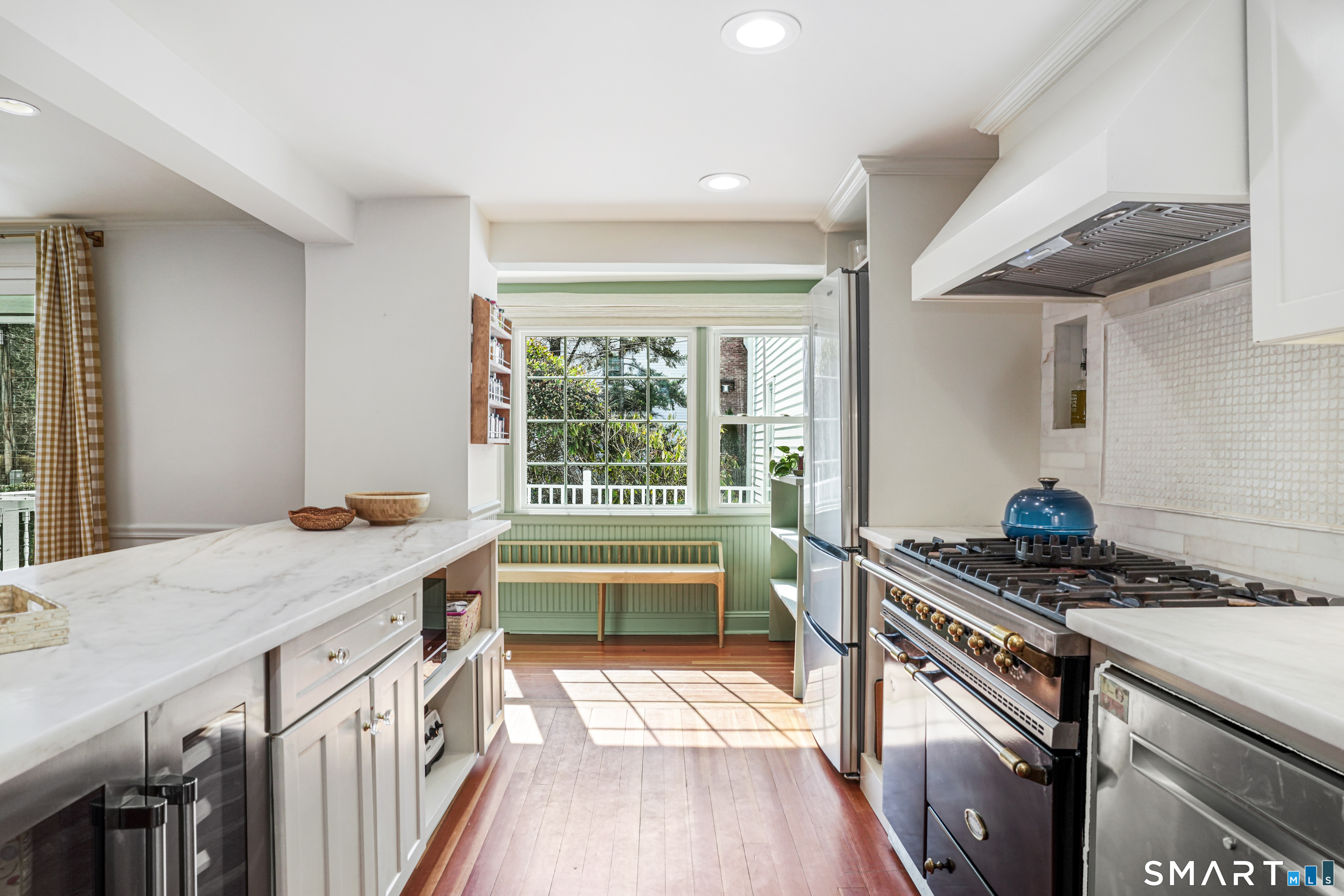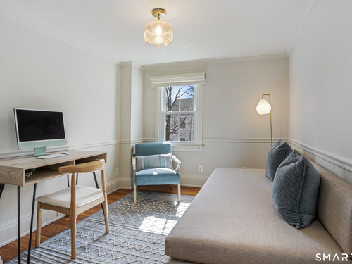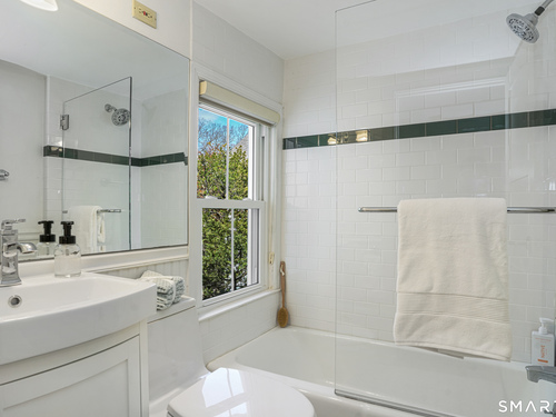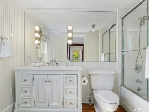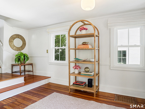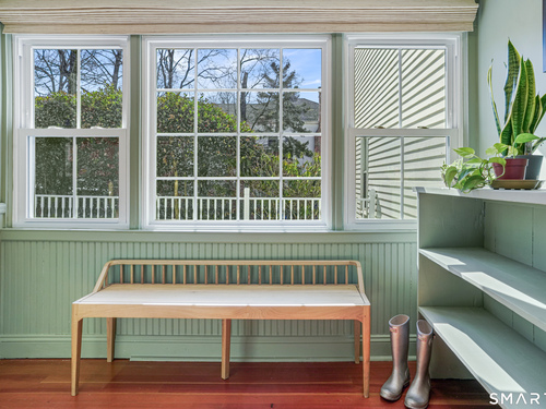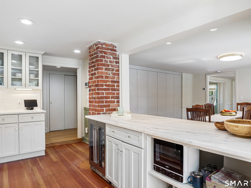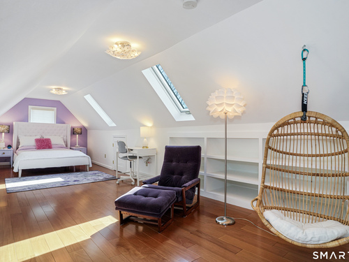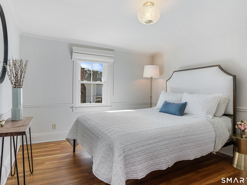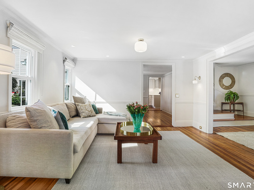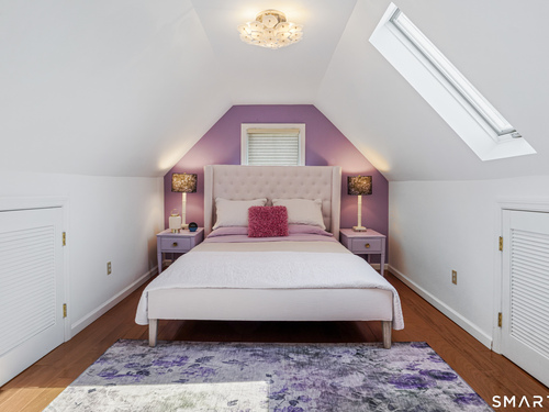 Rich in warmth and history, this enchanting antique gable-front home has been thoroughly updated to offer the rare combination of timeless character and modern ease. A townhouse in a small condo association, the home lives like a single-family home, blending privacy, space, curb appeal, and charm with the convenience of shared exterior maintenance. The home welcomes guests with an inviting foyer leading to open living spaces. The thoughtfully renovated chef's kitchen features elegant marble countertops and a stunning Lacanche range, handcrafted in Burgundy, France. Upstairs are three bedrooms, including a spacious primary suite with an updated en suite bath. The third floor, with its sun-filled skylights, built-in shelving, and new flooring, offers exceptional flexibility. It is ideal as a home office, playroom, private guest space, or as the coolest kids' bedroom ever, with its hangout area featuring a rattan swing chair. The recently fully-finished basement expands the home's living space and is perfect for recreation, fitness, or a media room. Other significant recent upgrades include a new heat pump system, tankless water heater, and built-in cabinets. A private, south-facing deck invites morning coffee, outdoor dining, and summer entertaining. Dedicated outdoor parking spaces and a private garage add daily convenience. Located in a quiet, walkable neighborhood with a great sense of community. Near to New Canaan's village, schools, Bristow Bird Sanctuary, and Mead Park.
