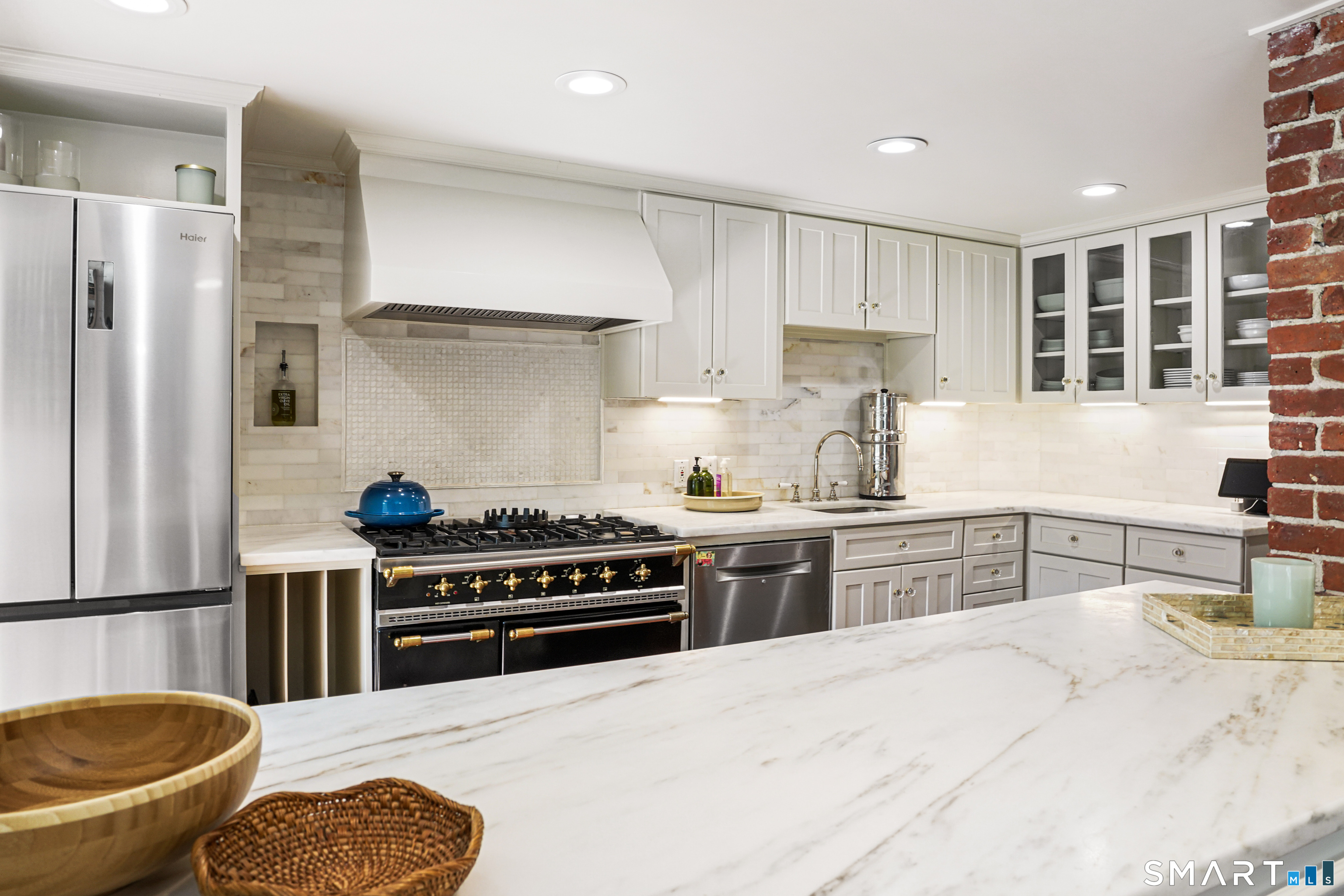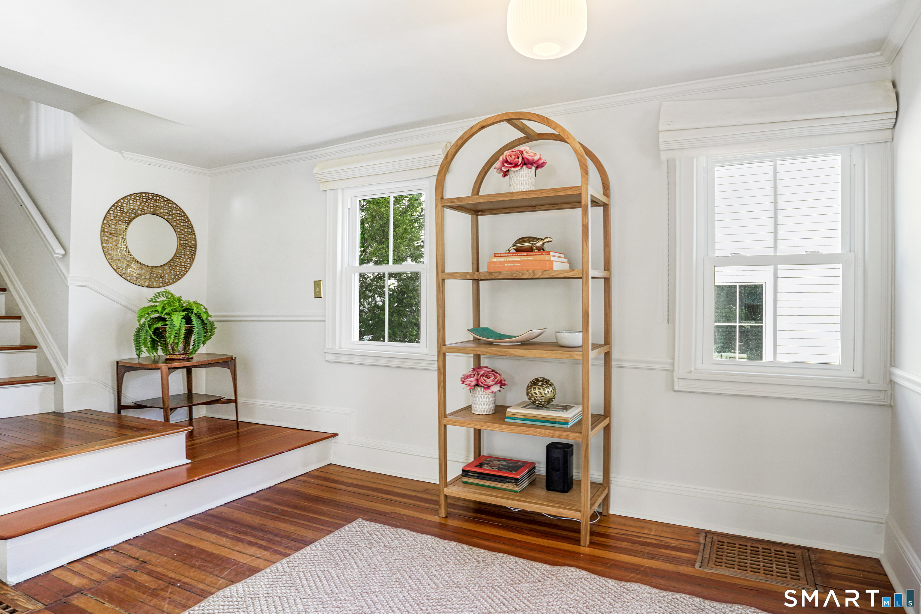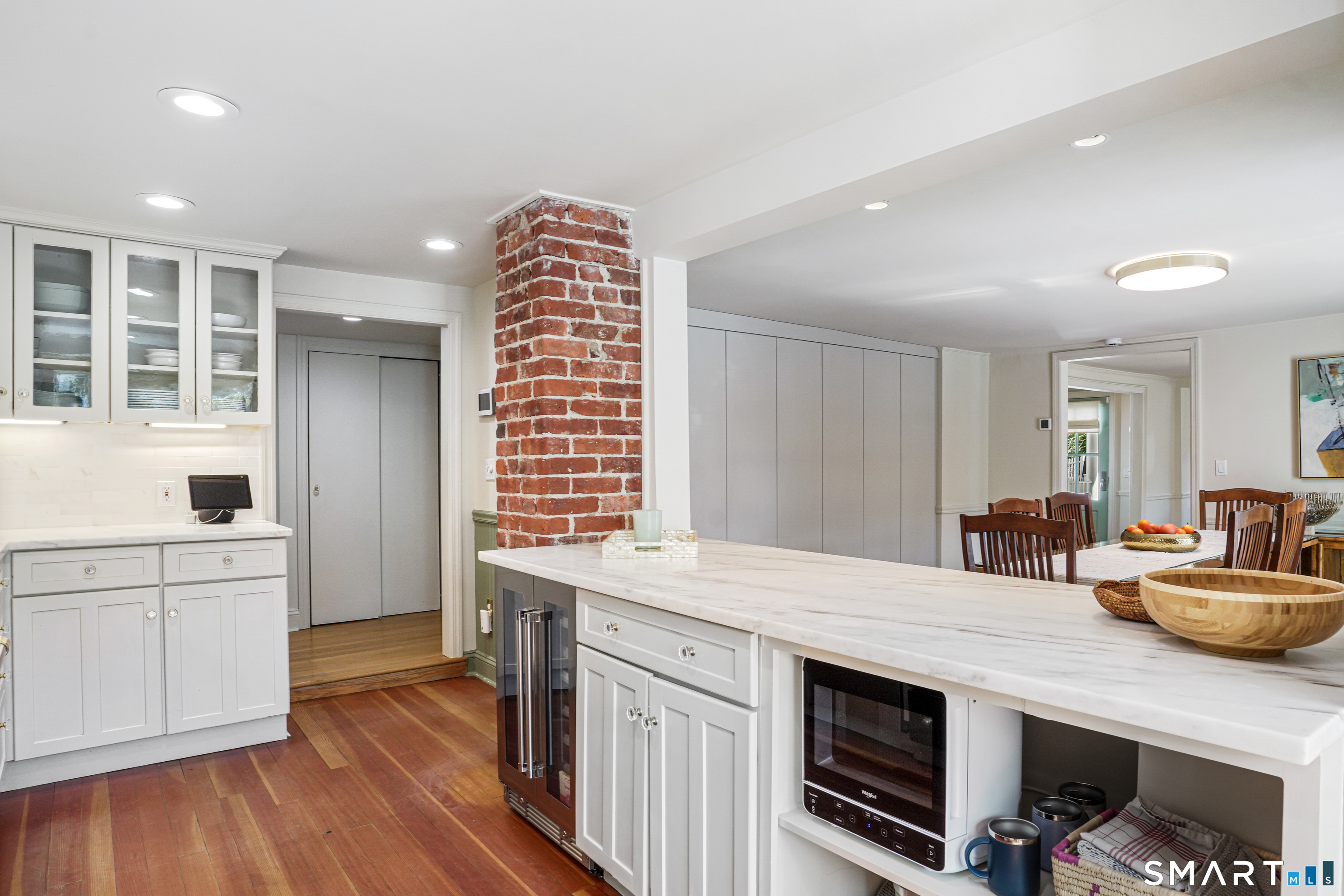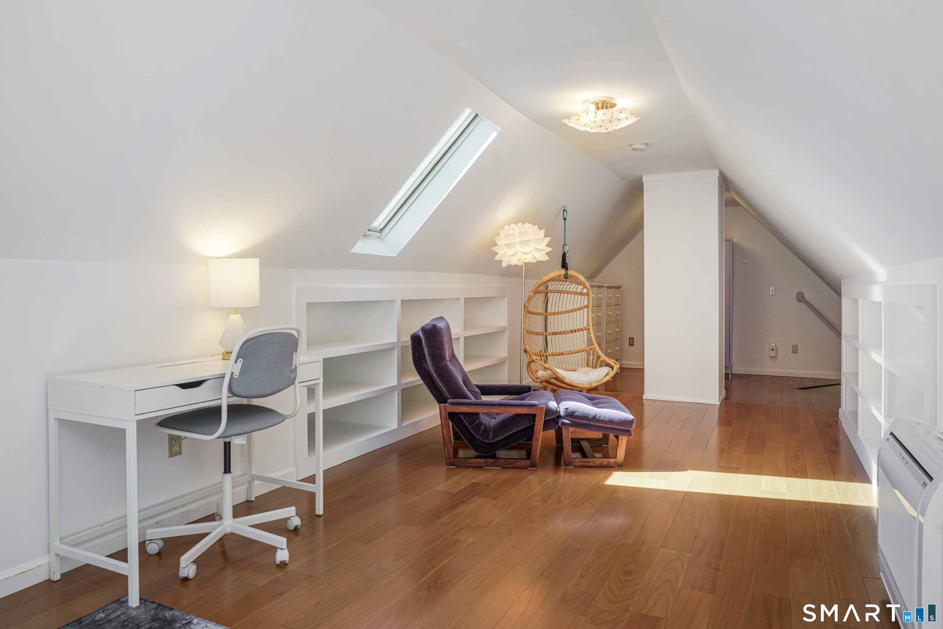 Rich in warmth and history, this enchanting antique gable-front home has been thoroughly updated to offer the rare combination of timeless character and modern ease. A townhouse in a small condo association, the home lives like a single-family home, blending privacy, space, curb appeal, and charm with the convenience of shared exterior maintenance. The home welcomes guests with an inviting foyer leading to open living spaces. The thoughtfully renovated chef's kitchen features elegant marble countertops and a stunning Lacanche range, handcrafted in Burgundy, France. Upstairs are three bedrooms, including a spacious primary suite with an updated en suite bath. The third floor, with its sun-filled skylights, built-in shelving, and new flooring, offers exceptional flexibility. It is ideal as a home office, playroom, private guest space, or as the coolest kids' bedroom ever, with its hangout area featuring a rattan swing chair. The recently fully-finished basement expands the home's living space and is perfect for recreation, fitness, or a media room. Other significant recent upgrades include a new heat pump system, tankless water heater, and built-in cabinets. A private, south-facing deck invites morning coffee, outdoor dining, and summer entertaining. Dedicated outdoor parking spaces and a private garage add daily convenience. Located in a quiet, walkable neighborhood with a great sense of community. Near to New Canaan's village, schools, Bristow Bird Sanctuary, and Mead Park.