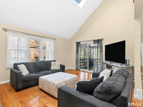 Welcome to this beautiful corner-unit townhouse located in the highly desirable Northbrook Condominium Complex. Offering approximately 1,471 square feet of living space, this well-maintained 2-bedroom, 2-bath home combines comfort, convenience, and low-maintenance living in a prime commuter location. The main level features the ease of true one-level living with hardwood floors throughout, highlighted by a spacious bedroom and full bathroom. The updated kitchen is equipped with granite countertops and stainless-steel appliances and flows seamlessly into the dining area and living room. The living room showcases vaulted ceilings and skylights, filling the space with natural light and creating an open, airy feel. Sliders off the living room lead to a fully enclosed porch-perfect for relaxing and enjoying spring and summer evenings. Upstairs, you'll find a versatile loft area ideal for a home office, reading nook, or additional sitting space. The upper level also offers an oversized bedroom with a full bathroom and generous closet space. There is also a full basement with a partially finished area that can easily serve as a playroom, gym, or home office. Additional features include a one-car garage, extra parking, and Residents can enjoy access to two pools, pool house, tennis & pickle ball courts along with beautifully maintained grounds. Conveniently located close to shopping, dining, and all the amenities Monroe has to offer, and just minutes from Route 25 & I95.