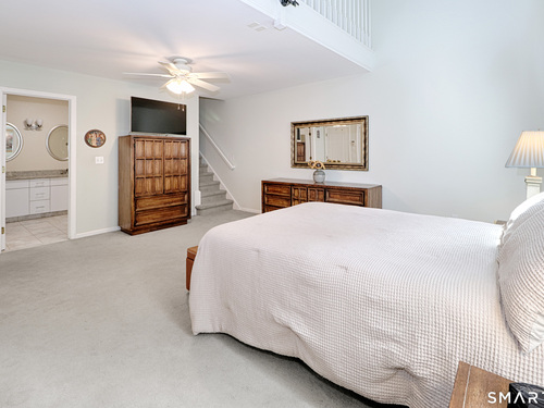 Primary Br Suite (Main Level)Ceiling Fan, Full Bath, Stall Shower, Whirlpool Tub, Wall/Wall Carpet