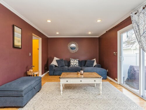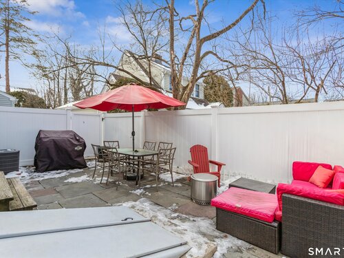 Set in one of Springdale's most sought-after communities, this sunny end unit offers privacy, space, and a layout designed for everyday living and easy entertaining. The main level features a welcoming living room with a wood-burning fireplace and direct access to a large, fully fenced patio, perfect for outdoor dining, relaxing, or weekend grilling. The kitchen has been thoughtfully updated with a new stainless steel sink and KRAUS touch faucet, complemented by all LG stainless steel appliances, including a double oven that makes cooking and hosting a breeze. Central air throughout all levels ensures year-round comfort, while the finished lower level provides flexible space ideal for a family room, home office, gym, or media room. An exterior 240V outlet offers convenient EV charging, adding modern functionality to this already well-rounded home. Tucked within a quiet, peaceful setting, the location remains incredibly convenient with easy access to the Merritt Parkway, Springdale and Talmadge Hill train stations, shopping, dining, public transportation, Twin Rinks, Woodway Country Club, and downtown Stamford. A rare opportunity to enjoy low-maintenance living with thoughtful upgrades in a tranquil setting, all while staying close to everything Springdale and Stamford have to offer.