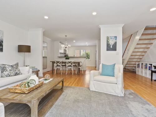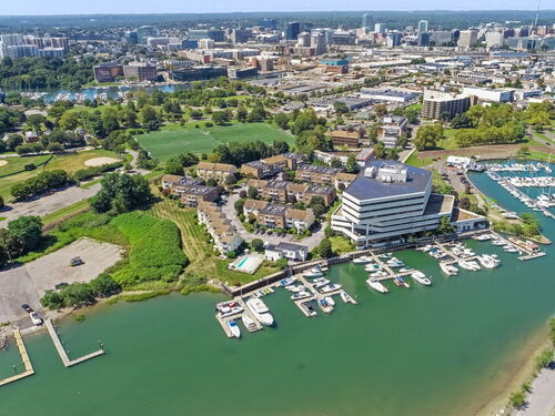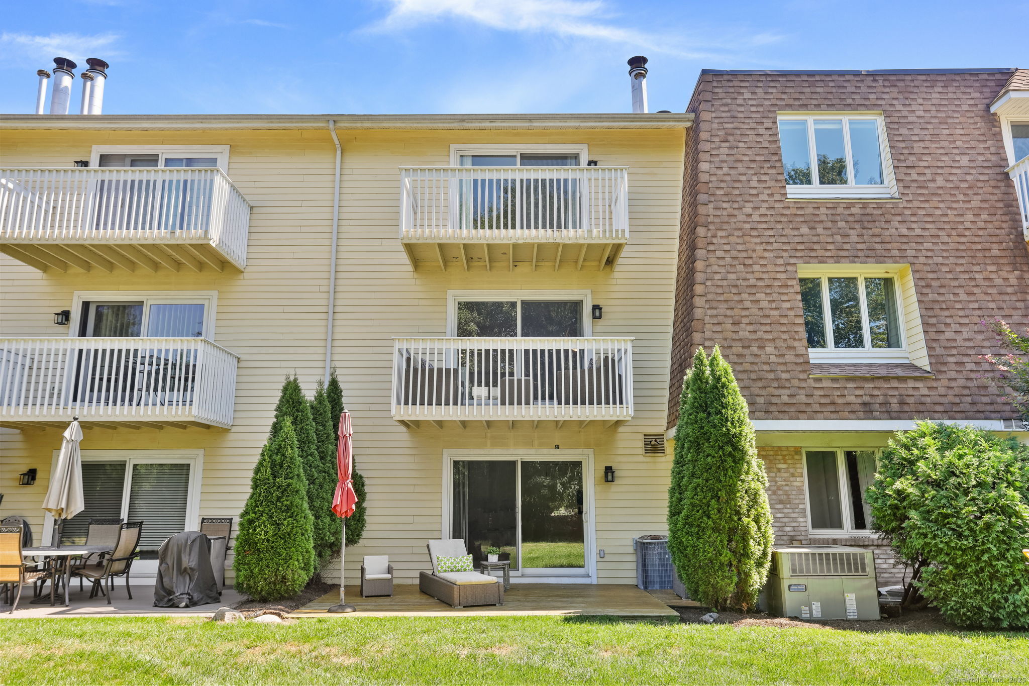 Marina Bay - the best of coastal living with everyday convenience! Designed for today's lifestyle, this 3-bedroom, 2.5-bath Shippan Point townhouse offers an open main level where the kitchen flows into the dining area and living room with fireplace, with sliders leading to a deck overlooking park-like grounds. Upstairs, the primary suite includes a renovated bath and private balcony, while two bedrooms share an updated full bath. The walkout lower level with patio extends your living space, ideal for a family room, playroom, or office. Hardwood floors, an attached garage, and a storage area add to the appeal. Community lifestyle perks include a clubhouse, pool overlooking the Sound, kayak racks, bike room, and grills. Ideally located steps from beaches and parks, and only minutes to Metro-North, Harbor Point, and downtown Stamford.