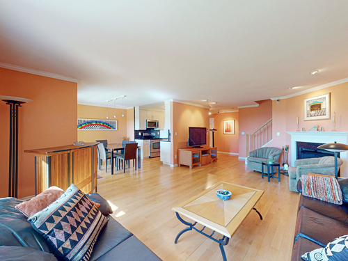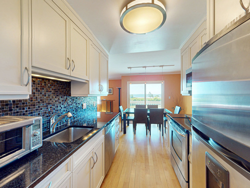 Shippan Point home has sparkling water views over Long Island Sound! Welcome to your seaside escape located in coveted Marina Bay. This bright and spacious 2-bedroom, 2.5-bath duplex condominium is perfectly sited just steps to the beach and minutes to Metro North train, and downtown shopping. Designed with an open-floor plan and flooded with natural light, the main level features an updated galley kitchen with granite counters, stainless steel appliances, and custom cabinets. The kitchen flows seamlessly into the dining area, where sliders open onto a private balcony-your perfect venue for relaxing or entertaining with spectacular water views. The adjoining oversized living room has a warming wood fireplace. A tastefully updated powder room and plenty of storage complete the main floor. Upstairs, the serene primary suite offers a luxurious private balcony overlooking Long Island Sound, a spacious layout with a walk-in closet, and a full en-suite bath. The second bedroom is filled with natural light and features custom closets, making it perfect as a guest room, home office, or both. A second full bath, laundry, and central vacuum are conveniently located on this level as well. Enjoy resort-style living with access to beautifully landscaped grounds, a waterfront in-ground pool, kayak racks, bike room, grills and a recently renovated clubhouse.