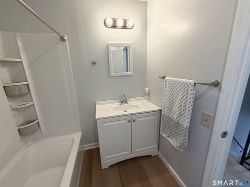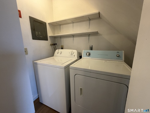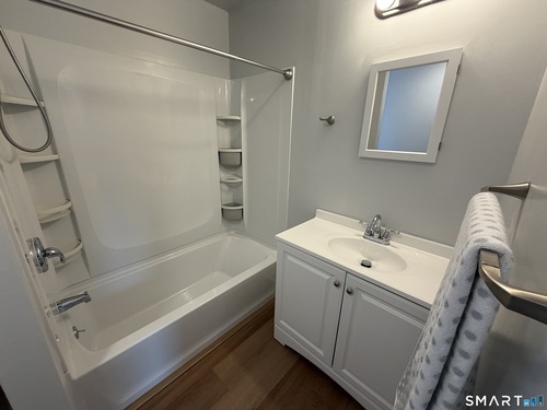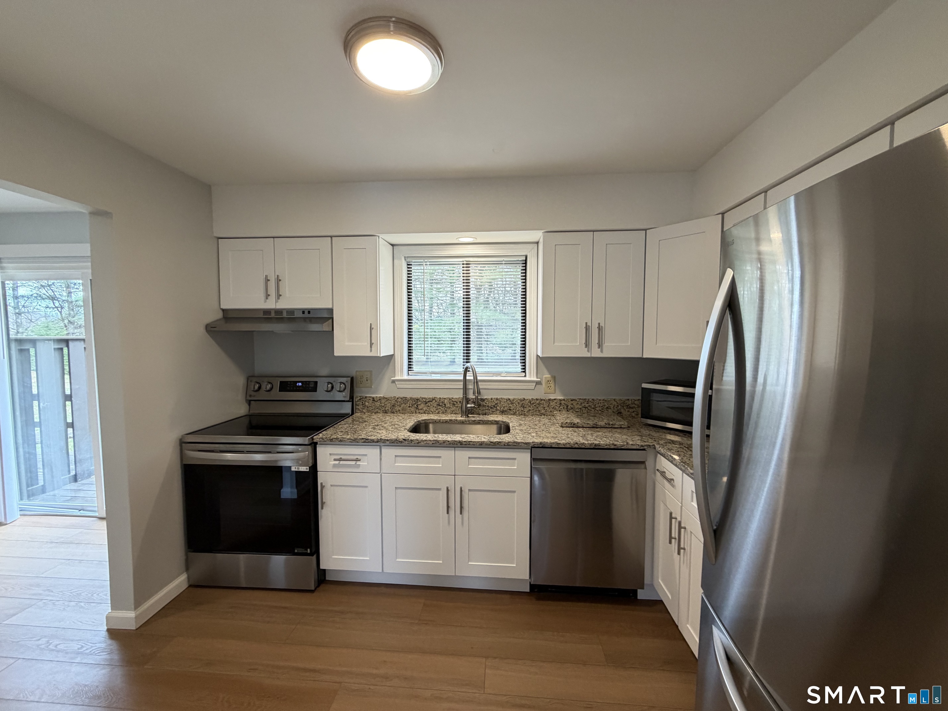 Move right into this light and bright recently renovated Townhouse. New kitchen in 2025 with white Shaker cabinets, granite countertops, stainless steel appliances, new slider in dining room to deck overlooking large lawn, new luxury vinyl flooring entire main level, Updated powder room with new tile floor, updated main bath with brand new tub/shower, newer vanity and floor. Both bedrooms are very large, have abundant closet space, and brand new windows. Pull down attic storage. Full sized washer and dryer in closet on main level. Assigned parking right at the front door and pleny of guest parking nearby. Amenities include sunny in-ground pool and clubhouse.