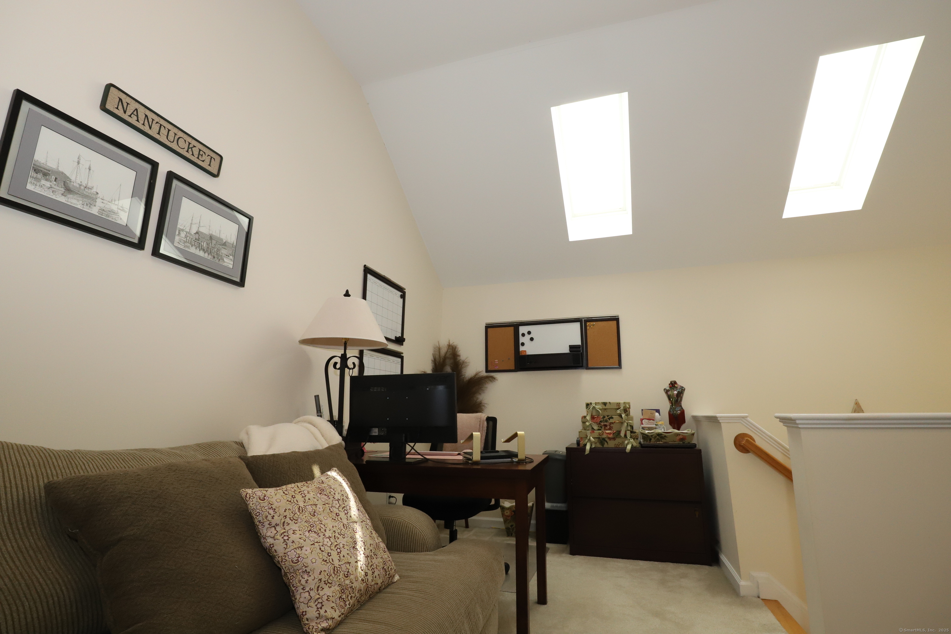 Welcome home to 70 Woodcrest Lane located in the mature Woodland Hills Community. Move in this fall and enjoy the gorgeous landscaping that this community prides itself in. Amenities include a terrific clubhouse featuring a swimming pool, tennis courts, fitness center, basketball court and party room. Or simply enjoy peaceful walks around the neighborhood while enjoying the view, meeting neighbors and making new friends. This large townhouse has room for everyone. Walk into a finished lower level including a foyer, coat closet, garage access as well as a finished flex room that can be used as a family room, office, workout space or anything else that you can imagine. On the main level you will be greeted by beautiful 3/4 inch hardwood floors throughout leading to the living room with gas fireplace, dining room, powder room and kitchen featuring a walkout to a generously sized paver patio perfect for relaxing. All kitchen appliances were replaced within the last 3 years and are like new. Step upstairs where two large bedrooms with en-suites and brand new carpeting await you. Primary bedroom features tall vaulted ceilings with lots of natural light. Laundry closet between both bedrooms offers convenience that isn't found in every home. Go up one more floor to a cozy and spacious loft featuring skylights that could be used as a guest room, office, media room or most anything else. All windows feature custom plantation shutters which give this home a warm feeling.