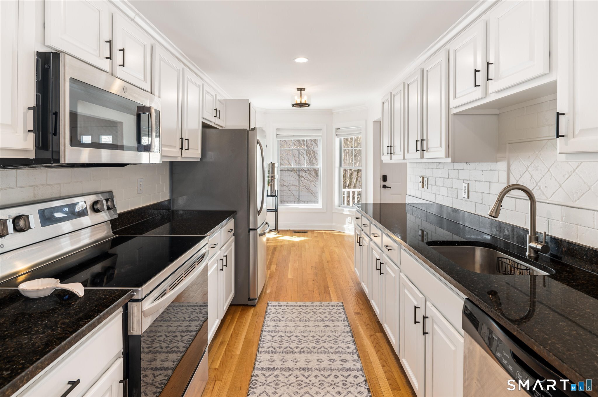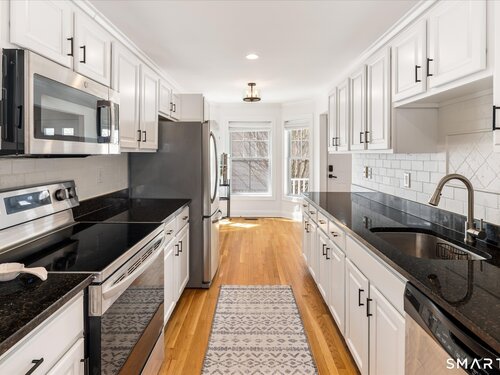 Welcome to sophisticated, resort-style living at 85 Camp Avenue! This stunning 2-bedroom, 2.5-bathroom townhouse-style condo, built in 2007, offers an expansive 1,925 square feet of modern, light-filled space complemented by fantastic community amenities. As you enter, you'll immediately appreciate the thoughtful layout and contemporary design. The open-concept main level flows seamlessly, creating an ideal environment for both relaxing and entertaining. The kitchen has been recently enhanced with a custom-built pantry and a chic coffee bar, adding both style and valuable storage. Upstairs, the private quarters include two generous bedrooms. The primary suite is a true retreat, featuring a spacious layout and a beautifully updated en-suite bathroom with a new vanity and modern lighting. A major highlight of this unit is the versatile upper-level loft-a perfect flexible space for a home office, media room, or guest room. You'll find a dedicated laundry room on the lower level w/ tons of storage space, as well as the convenience of a one-car attached garage. Beyond your front door, the community offers an exceptional lifestyle. Residents enjoy access to an in-ground swimming pool, a pool house, and a well-equipped fitness center. Located in the highly convenient Springdale location of Stamford, you are just moments away from the Merritt Parkway and a fantastic array of shopping and restaurants.