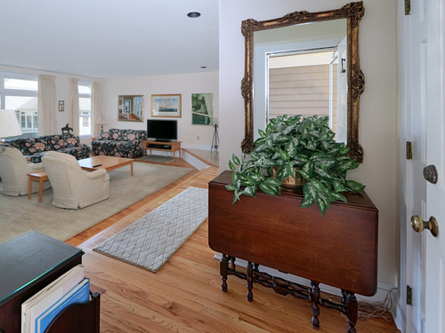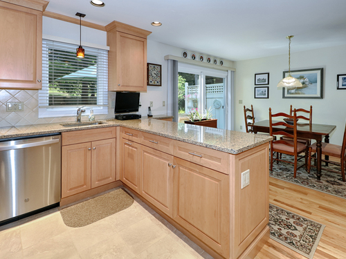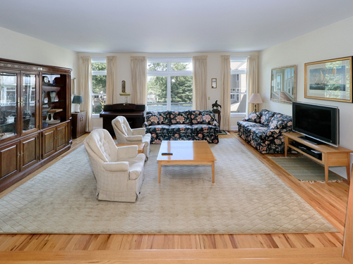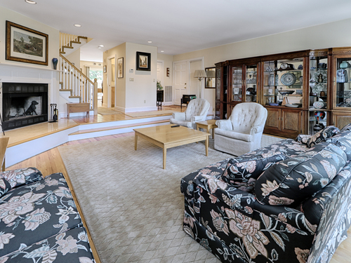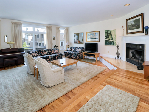 Nestled in a serene, beautifully landscaped community, this gracious townhouse at Pine Ridge offers the perfect blend of privacy and lifestyle. Set around a center green and gazebo, it creates a tranquil and inviting atmosphere. Located within a short walk to the beach, par 3 golf and tennis center. The bright and spacious living room, perfect for entertaining, has nine foot ceilings, a fireplace, a wall of windows and a balconey overlooking the front lawn and gazebo. The remodeled kitchen has quartz counters, island seating, and is open to the dining area. Sliders lead to a private rear patio for outdoor enjoyment. There are hardwood floors throughout the main floor. All windows have been newly replaced for enhanced energy efficiency. The second floor has a spacious primary bedroom suite with vaulted ceilings, and a totally remodeled bath, There is a large second ensuite bedroom with a remodeled bath. Also on this level is a laundry closet with a full sized washer/dryer. The finished lower level is ideal for an office or home gym. Access the two car garage with storage. Enjoy the wonderful lifestyle living here will afford