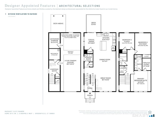 Move right into luxury with this designer-appointed Madaket Elite, one of the few homes available for a Summer 2026 move-in at The Willows at Brookfield. Thoughtfully curated with our Warm Contemporary Designer Appointed Collection, this home blends modern sophistication with timeless comfort. Beginning with its charming two-story foyer, the Madaket Elite offers an inviting open floor plan with an expansive main living level featuring a spacious great room and dining area. The expertly designed kitchen overlooks a bright casual dining space and is complemented by wraparound counter and cabinet space, a central island with breakfast bar, a roomy pantry, and direct access to the outdoor deck-perfect for indoor-outdoor living. The elegant primary bedroom suite features a palatial walk-in closet and a serene bath with dual-sink vanity and luxe shower with seat. Secondary bedrooms are highlighted by vaulted ceilings, generous closet space, and a shared hall bath. Additional highlights include a convenient living-level powder room, centrally located bedroom-level laundry, a lower-level everyday entry with unfinished storage area, and abundant storage throughout. This designer-appointed home offers a rare opportunity to enjoy luxury with a streamlined move-in timeline for Summer 2026.