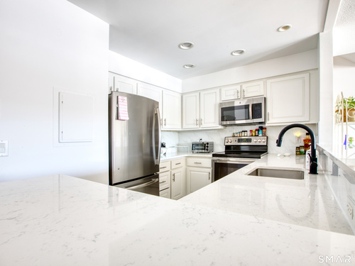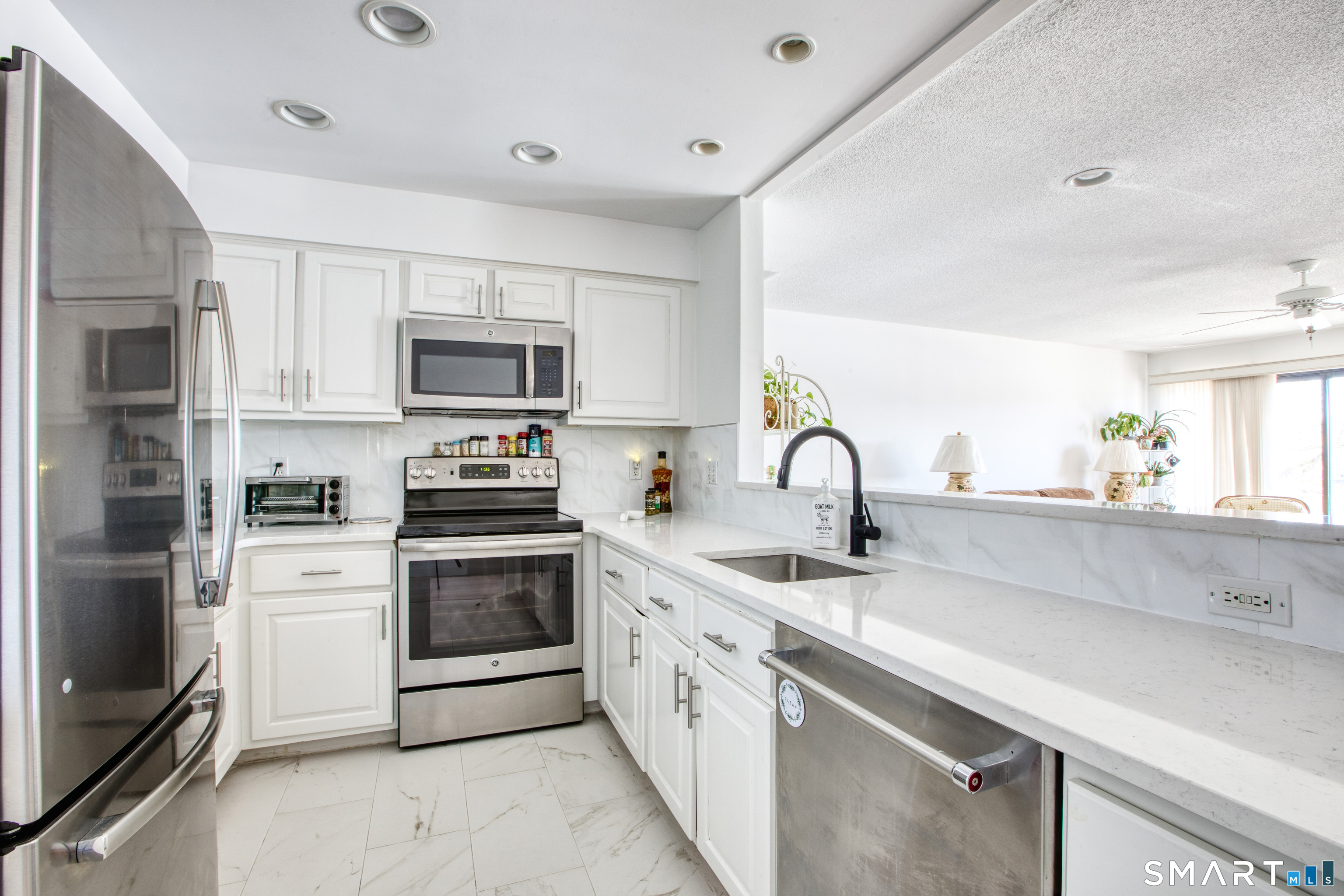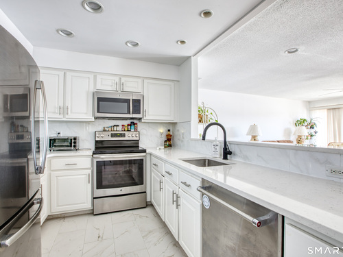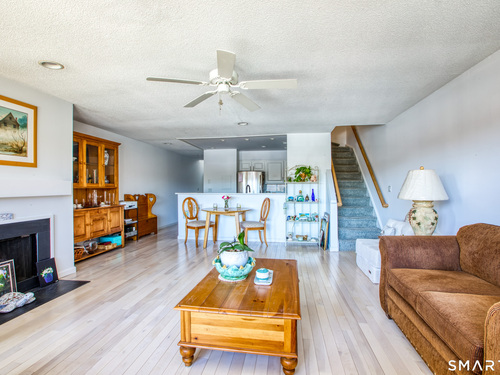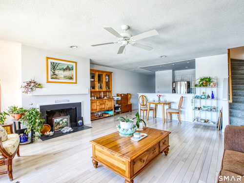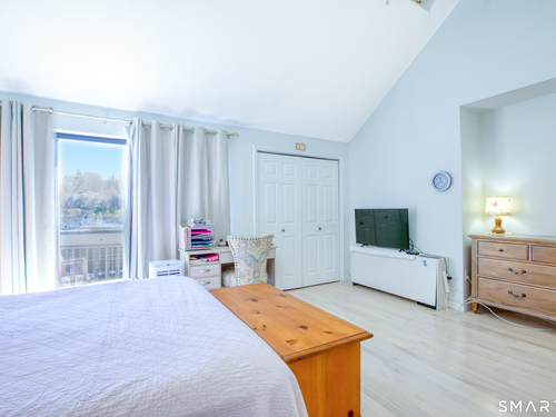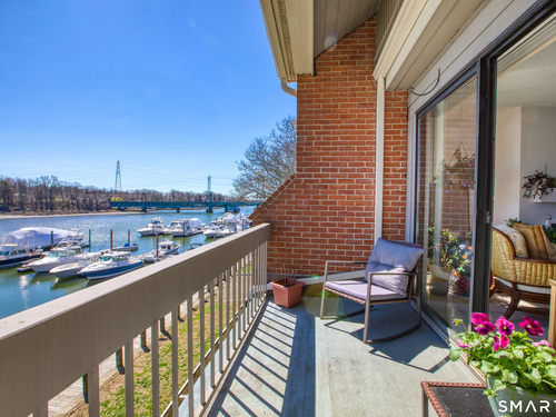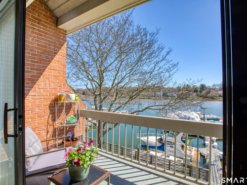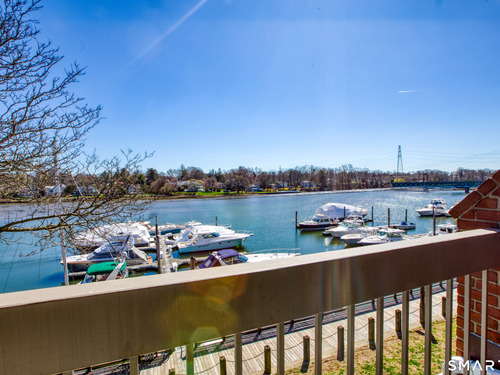 DIRECT WATERFRONT condo in the heart of Cos Cob Harbor. Experience serene riverfront living just minutes from trains, shops, restaurants, parks and more. This beautifully renovated two-bedroom, two-bath condo offers an open-concept main level featuring a kitchen, dining area and living room with a cozy fireplace. Sliding doors with direct access to a private balcony, providing tranquil views of the river. Upstairs the primary suite includes a full bath and a second balcony, perfect for morning coffee overlooking the water. Another bedroom and full bath complete the upper level. White oak floors flow throughout, enhancing the home's bright, modern aesthetic. This exceptional waterfront condo combines comfort, style and convenience in a coveted location. Highlights Include: Dual balconies with direct water views Pull-down attic for extra storage Dedicated storage room One garage space plus one unassigned outdoor parking space. Being Sold As Is.