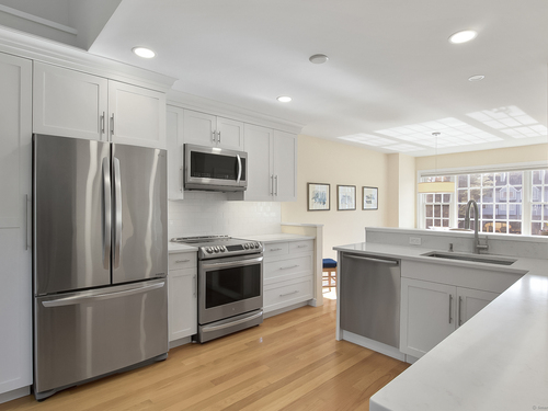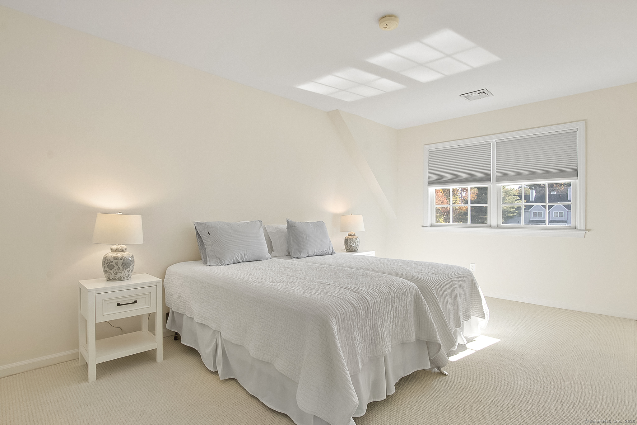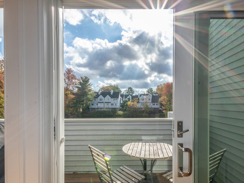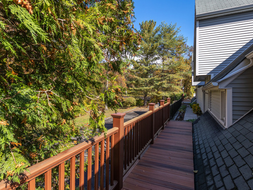 HIGHEST and BEST due Monday 10/27 at 5 pm.Picture perfect inside and out. Enjoy your morning coffee overlooking an idyllic pond from your living room balcony. Cook your favorite meal in the new white kitchen with quartz counters and dine al fresco on your private deck. There is also a dining room and a living room with fireplace to entertain or relax in. The first floor primary suite has a new luxurious bath and also opens to private deck. Upstairs, there are two guest rooms and a new hall bath. The white oak hardwood floors are new as is the carpeting in all of the bedrooms. The lower level has an additional 650 sq ft that is easily finished and opens to your private garage. Have it all, a stone's throw from town and trails. Pool and tennis court on the property! You will love living here!