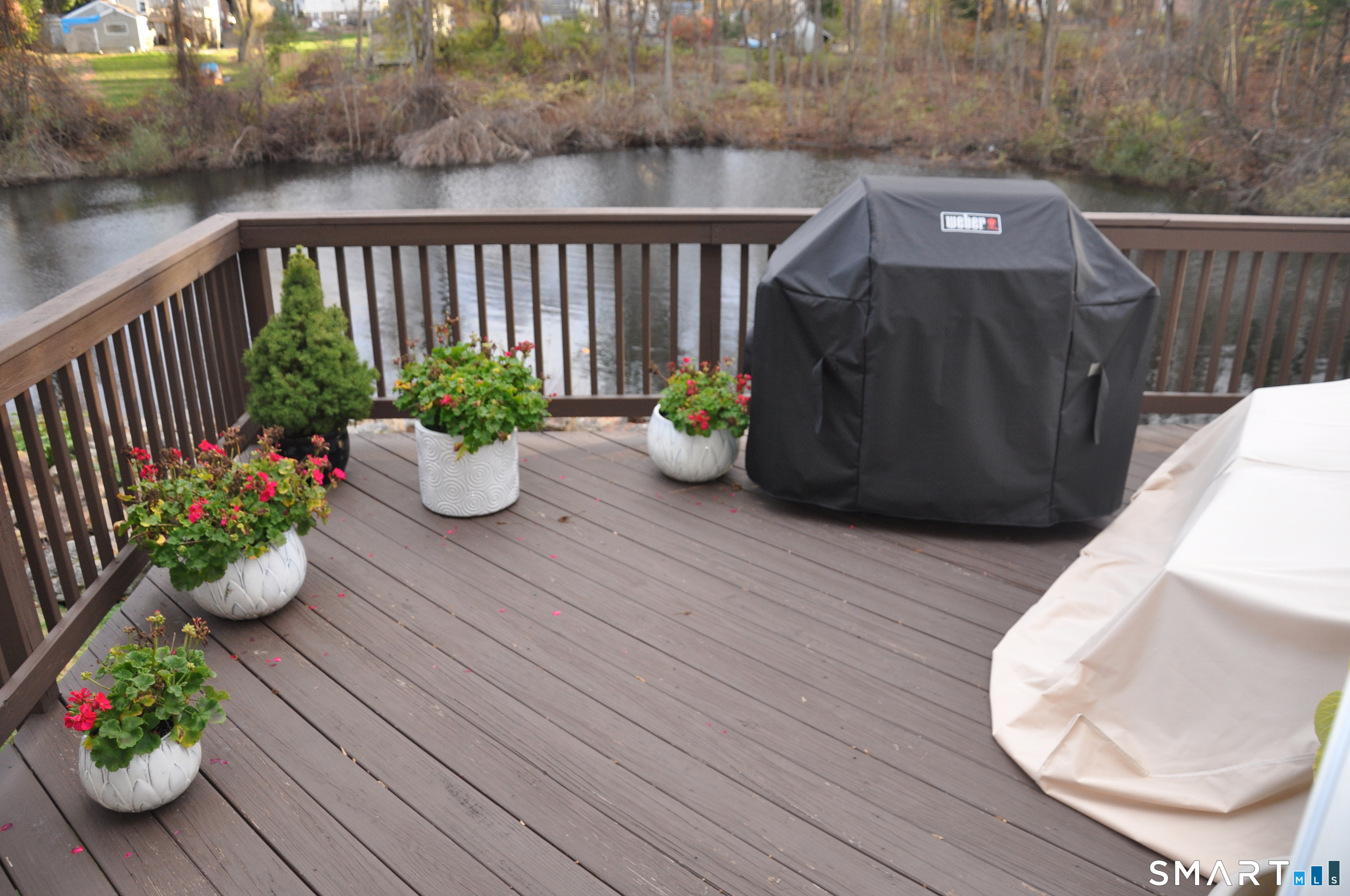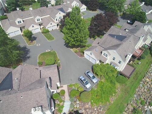 Welcome to one of Trumbull's most sought-after condominium communities. This beautifully maintained end unit, fully renovated in 2022, offers exceptional privacy and a bright, light-filled layout. Recent updates include a new kitchen and bathrooms (2022), a new roof (2024), and new skylights. The grand foyer opens to a sun-filled living room with access to an oversized deck overlooking the pond, perfect for entertaining or relaxing. Extra windows throughout enhance the open and airy feel. The updated kitchen features granite countertops, a breakfast bar, and flows seamlessly into the dining area. The upper level features two bedrooms, including a spacious primary suite with a cathedral ceiling, skylights, walk-in closet, and a full bath with double vanity. The second bedroom also offers a walk-in closet and is complemented by a versatile library/loft space, ideal for a home office or reading area. Laundry room on the same level. The finished lower level includes a comfortable family room with fireplace and a study space. Additional highlights include an attached two-car garage, ample guest parking, and a quiet, beautifully landscaped setting close to restaurants, scenic hiking trails, shopping, and commuter routes. Agent is the owner.