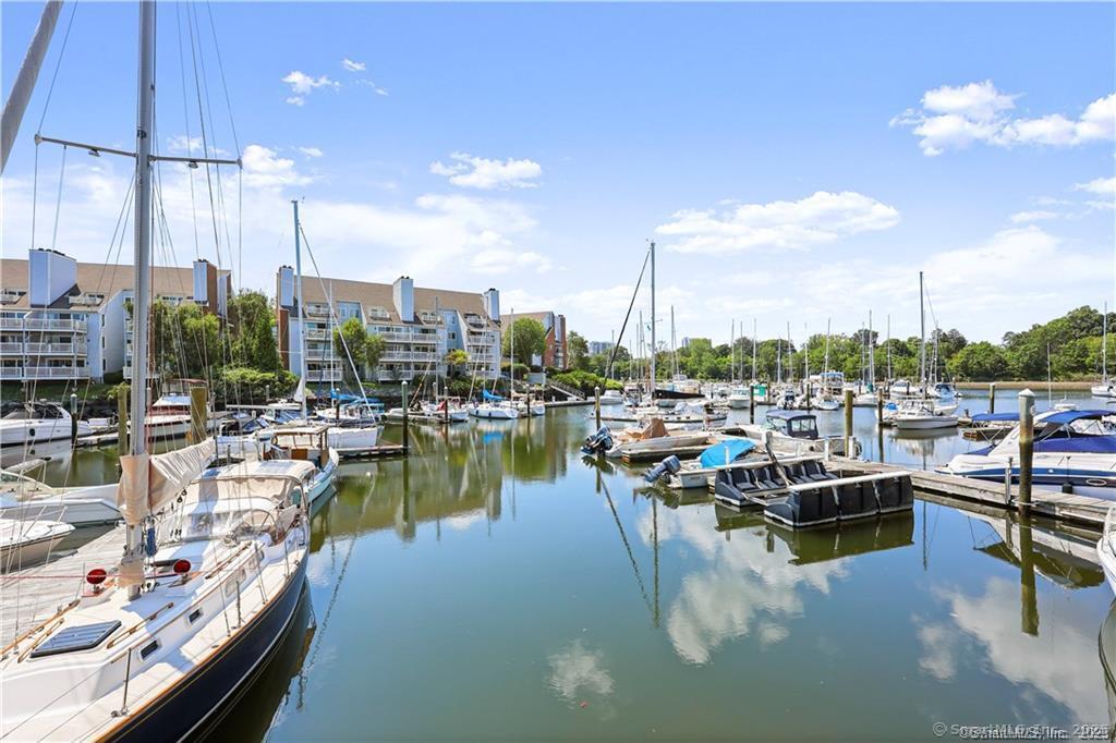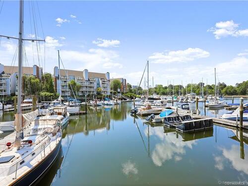 Welcome to Schooner Cove, where everyday living feels like a waterfront retreat. This move in ready 2 bed, 2 bath corner unit townhouse combines coastal luxury in a convenient location in Stamford's highly sought after Shippan Point neighborhood. The bright, open concept main level flows seamlessly from the kitchen with stainless steel appliances including wine cooler, granite countertops & ample storage into the spacious dining & oversized living area overlooking the water w/ a wood burning fireplace. Step through sliding doors to your private deck w/ views of the courtyard & marina, perfect for morning coffee. Upstairs, two spacious bedrooms offer ample closet space one w/ a WIC, offering comfort and privacy. Don't miss the 3rd floor loft, perfect for a home office or den w/ vaulted ceilings and a skylight. New modern wood look vinyl flooring throughout! Schooner Cove residents enjoy resort style amenities including a sparkling pool, boathouse, beautifully landscaped grounds, and inclusive HOA fees that cover heat, hot water, gas, and more. Conveniently located near West Beach, Cummings Beach, Harbor Point restaurants, downtown Stamford, and Metro North, this residence offers the best of both worlds - tranquil waterfront living less than an hour from NYC. Experience the ultimate in coastal sophistication, welcome home to Schooner Cove. Also available for rent.