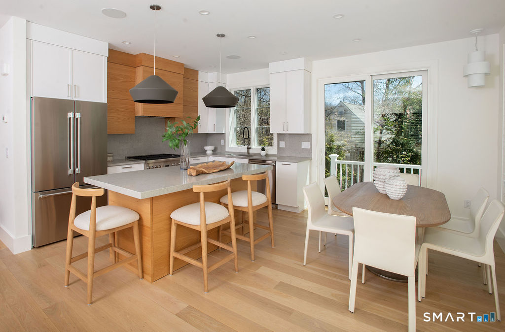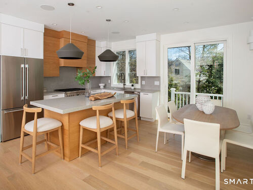 New 2024 | Detached Townhouse That Lives Like a Single-Family | Walk to Town & Train | Quiet Cul-de-Sac. A rare New Canaan offering combining new construction, privacy, and convenience-exactly what today's buyers are waiting for. Built in 2024 and further customized in 2025 by Cypress Development, this 3-bedroom home with a flexible fourth bedroom/office/playroom lives like a true single-family, offering over 3,200 square feet across four finished levels-without the maintenance of a traditional house. The main level is bright, expansive, and designed for effortless living and entertaining. A modern kitchen with custom cabinetry, high-end appliances, and a large center island flows seamlessly into the dining and living areas, anchored by a fireplace and bar. Upstairs, the primary suite offers a spa-like bath and generous walk-in closet. Two additional bedrooms and baths are well-proportioned, with a conveniently located laundry room on the same level. What truly distinguishes this home is its versatility: Finished third floor ideal as a fourth bedroom, office, or media space. Lower level with recreation area and glass-enclosed gym (or Office). Private, fenced patio and lawn-rare for this category. An attached two-car garage and a lock-and-leave lifestyle make this an ideal fit for downsizers, young families, or NYC buyers seeking a move-in-ready home close to town. The most seamless, turnkey path to new construction in New Canaan today.